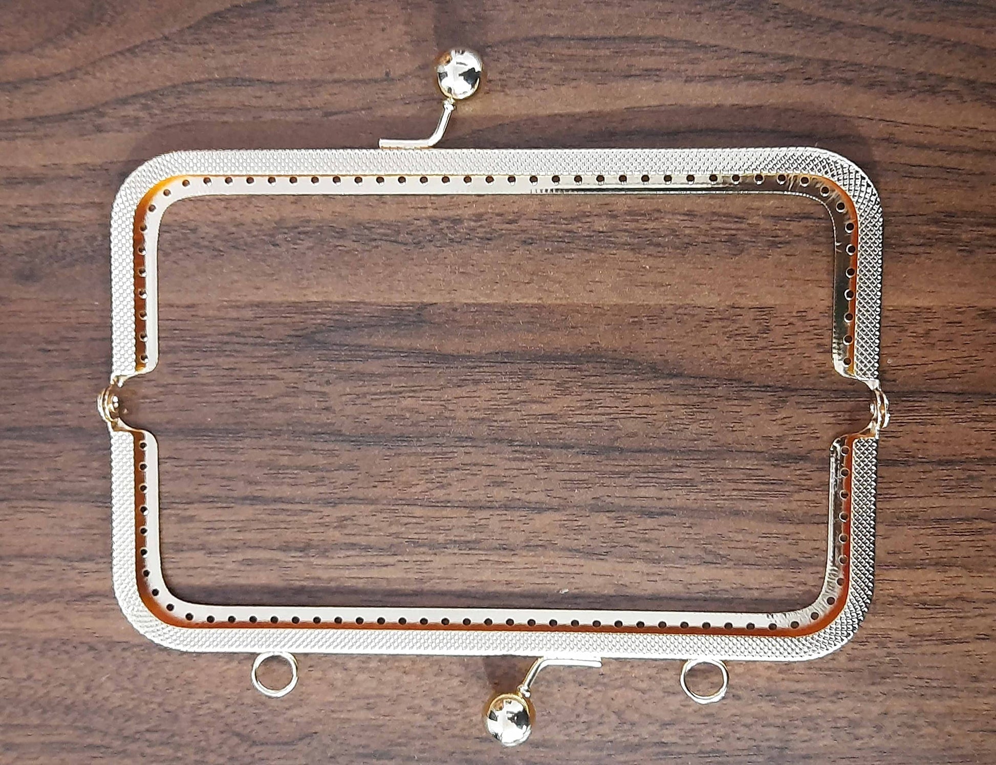 Tia Purse, Clutch Bag Making Metal Frames, Heavy Quality and Premium Finish (Golden Premium Frame -Rectangle-7Inch-4Pc)