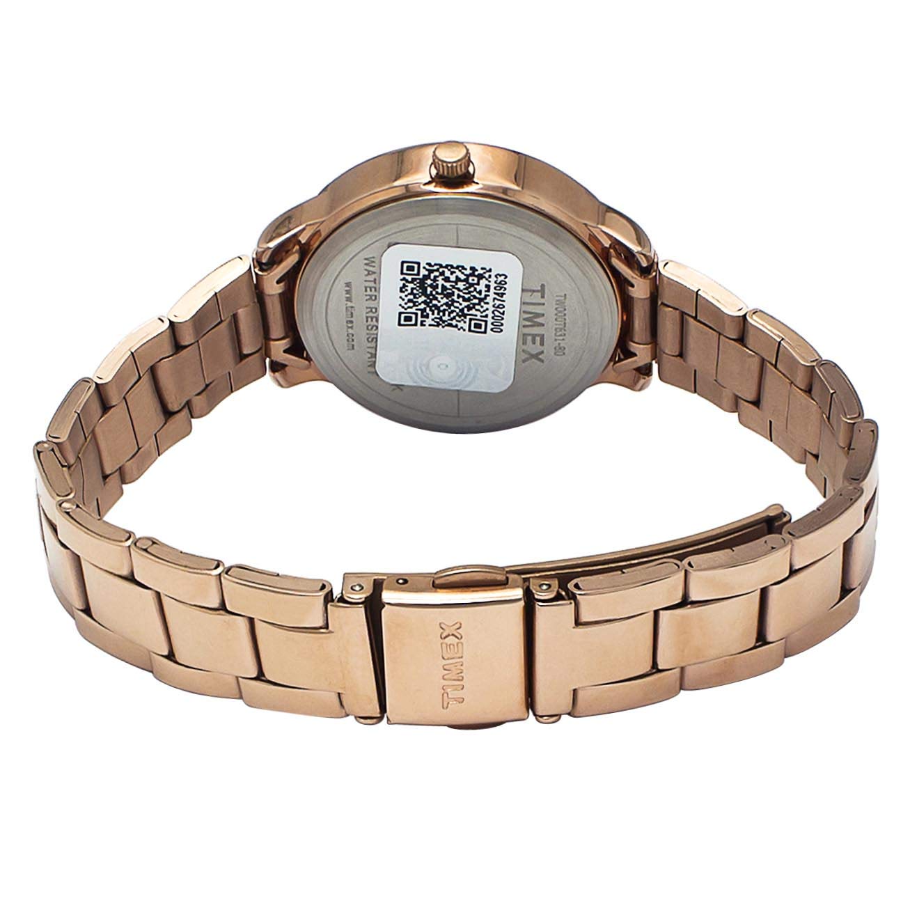 TIMEX Analog Watch for Women with Blue Round Dial & Rose Gold Stainless Steel Bracelet Band Water Resistant Women's Wrist Watches - TW000T631