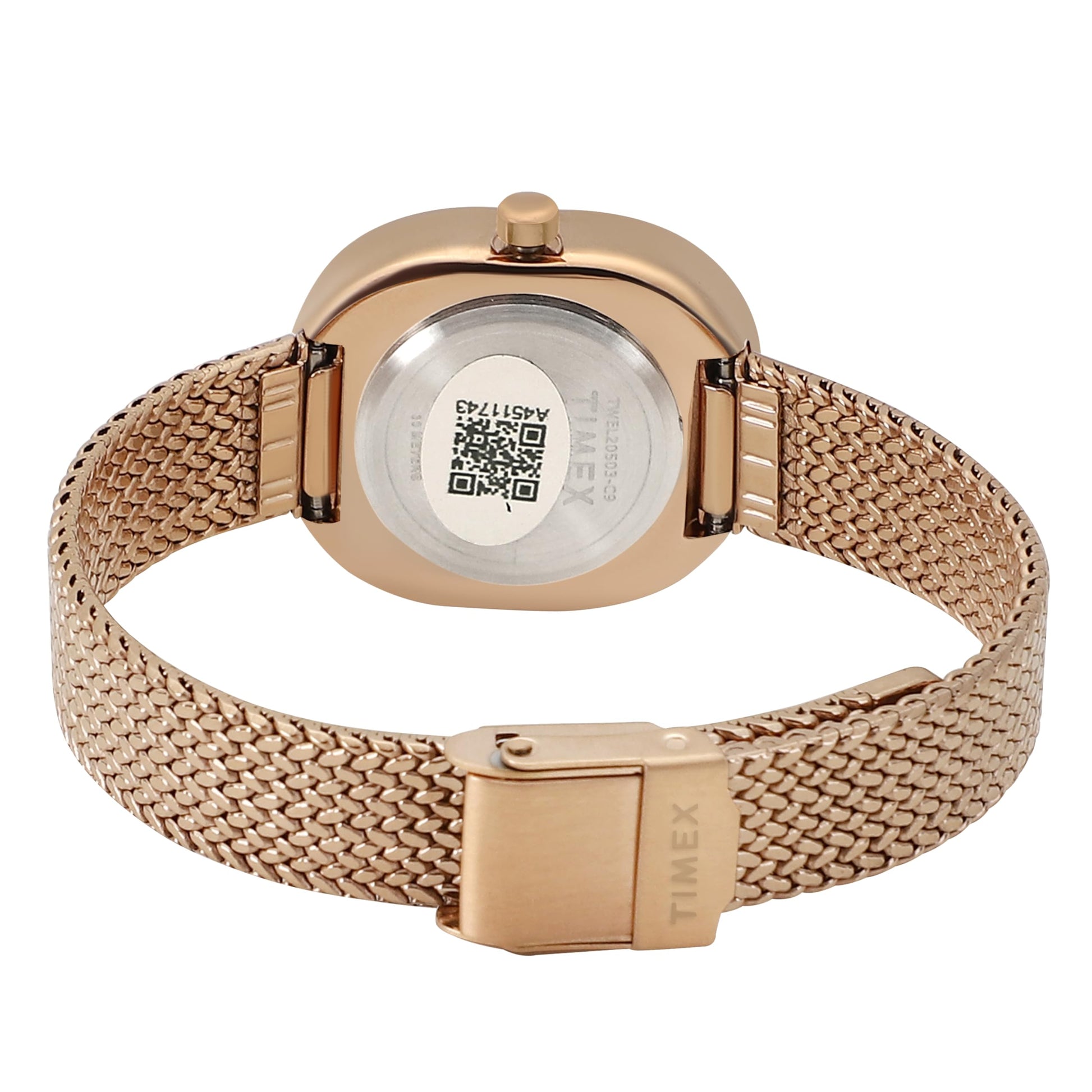 TIMEX Analog Watch for Women with Pink Square Dial & Rose Gold Stainless Steel Mesh Bracelet Band Water Resistant Women's Wrist Watches - TWEL20503