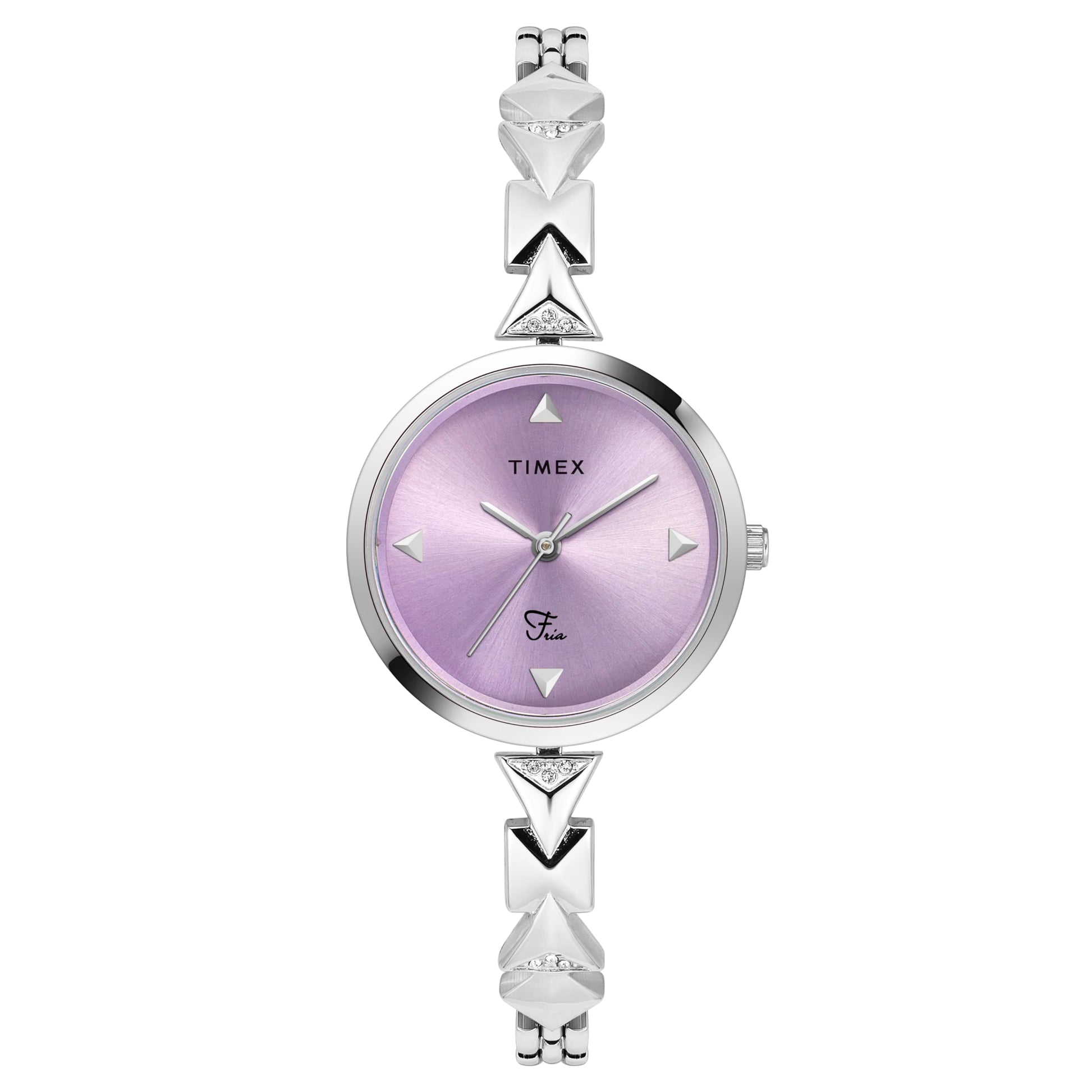 Details: The Timex Fria Women's Purple Round Analog Brass Dial Watch is a stylish and vibrant accessory. Its captivating purple round dial, carefully crafted from brass, adds a pop of color and personality to your look. With its analog display, this watch offers a timeless and classic aesthetic that can complement a variety of outfits and occasions. The unique purple hue and tasteful design make it a versatile and fashionable addition to your collection. The Timex Fria watch effortlessly combines style and functionality, making it a standout choice for those who appreciate both flair and reliability in a timepiece.