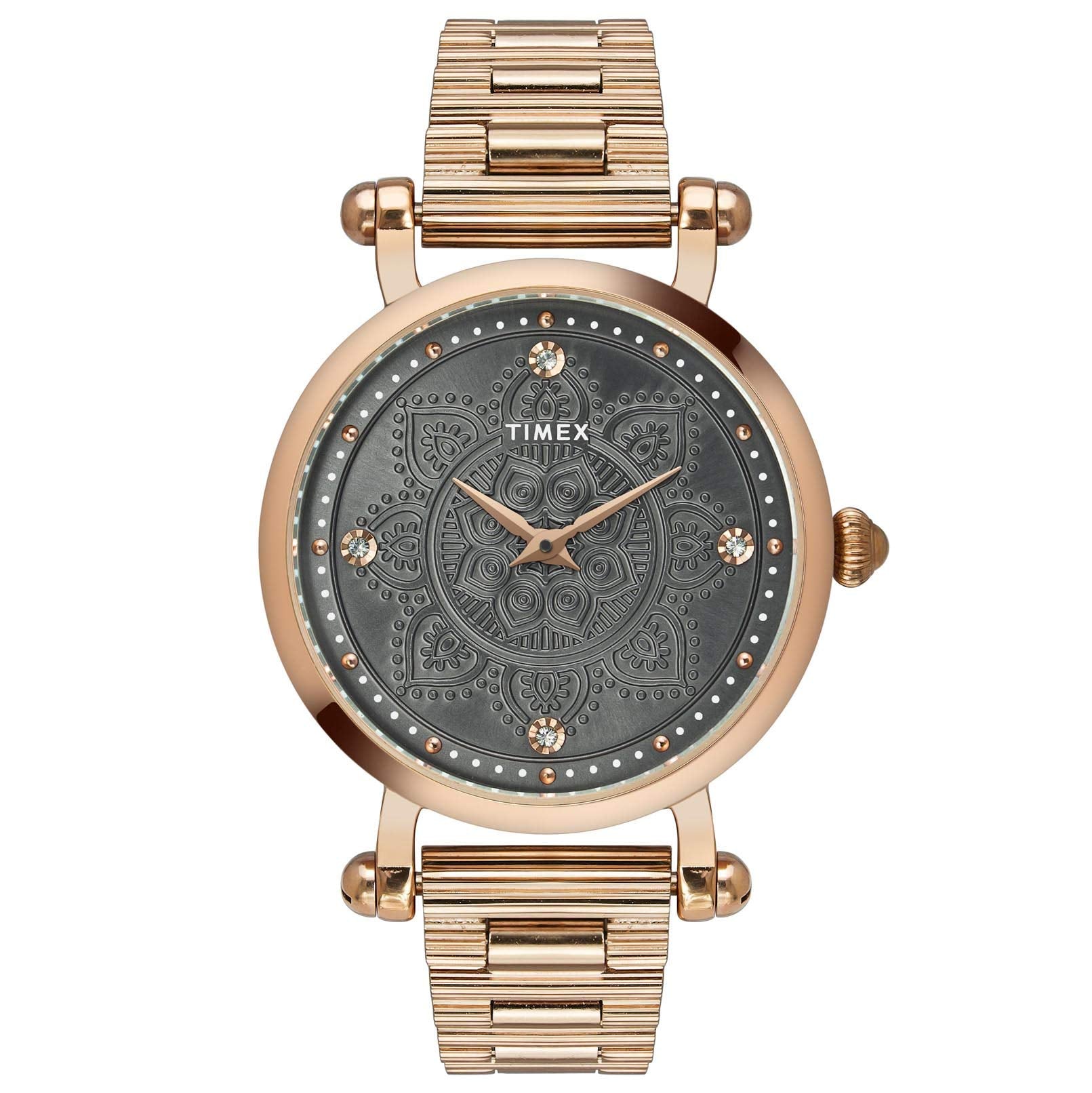 Timex Women Brass Analog Grey Dial Watch-Twel14302, Band Color-Rose Gold