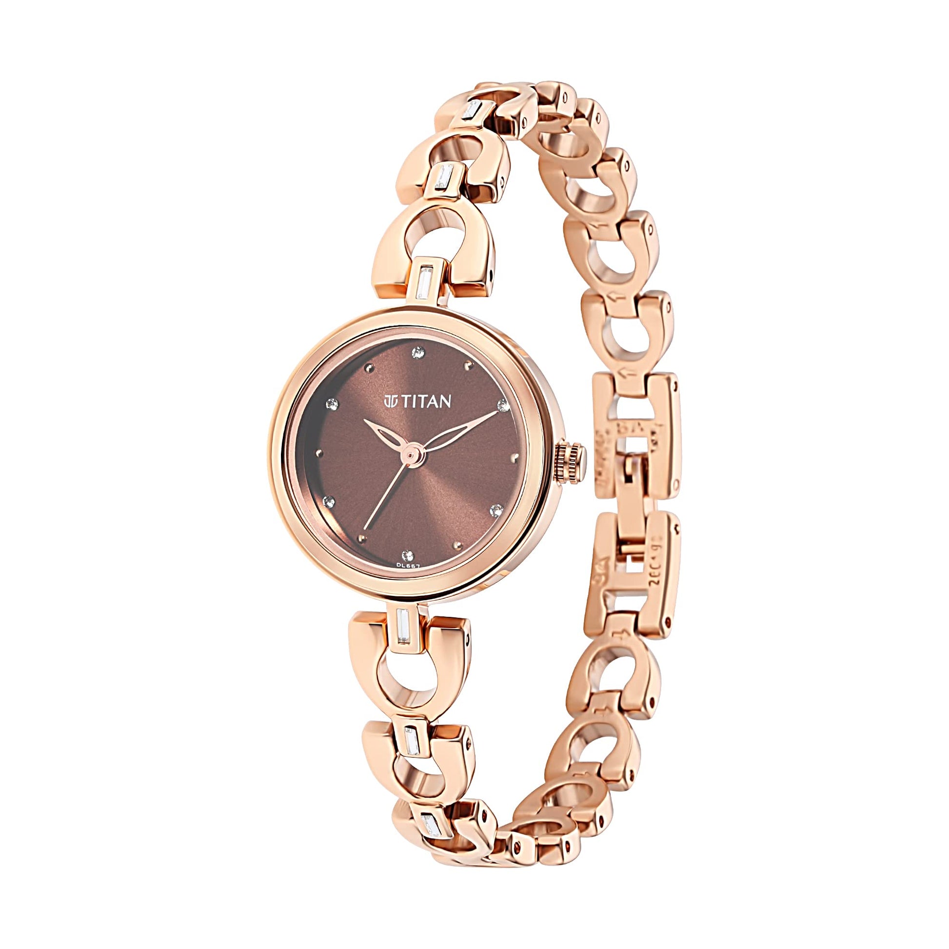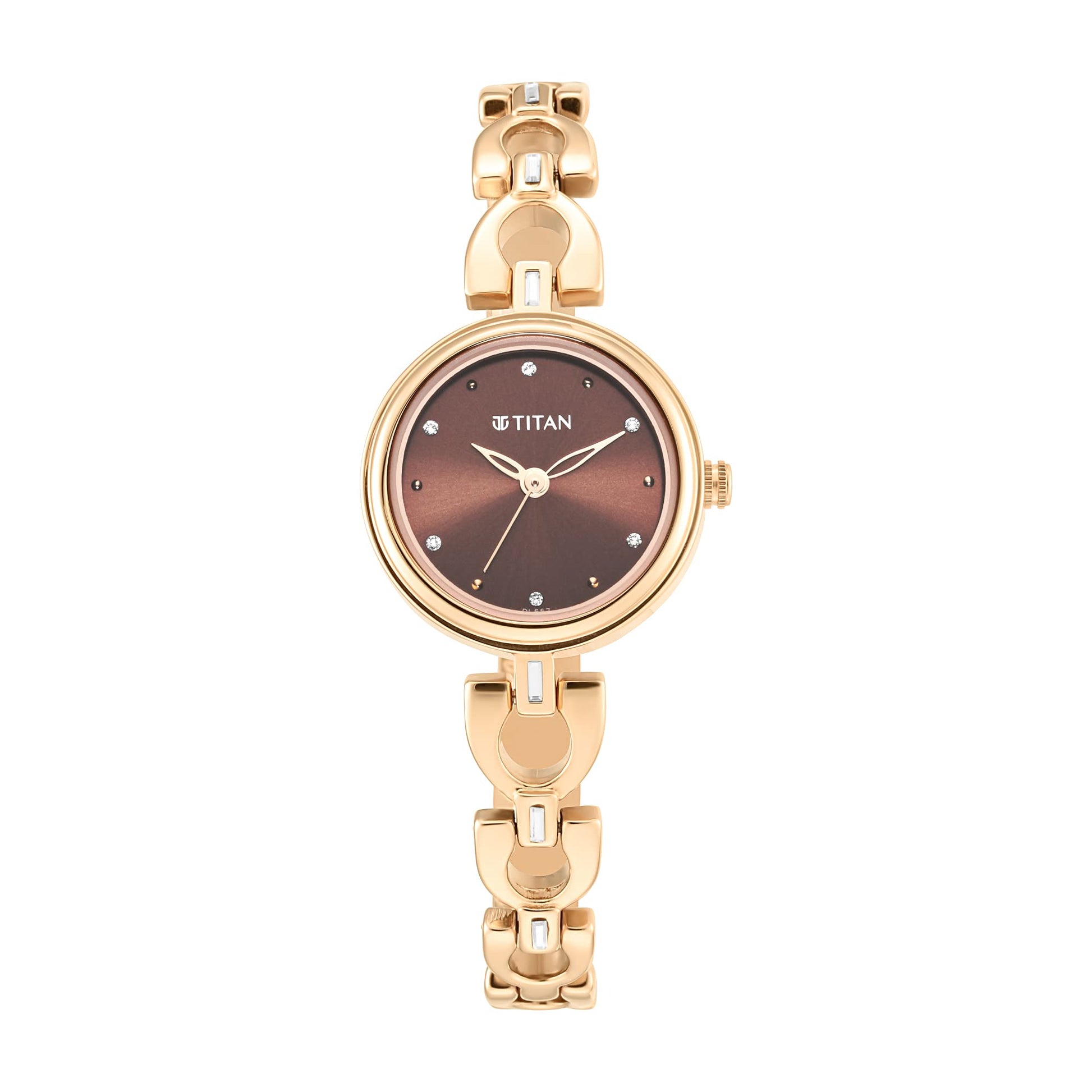 Titan Metal Analog Brown Dial Women's Watch-2601Wm04/Np2601Wm04, Band Color-Gold