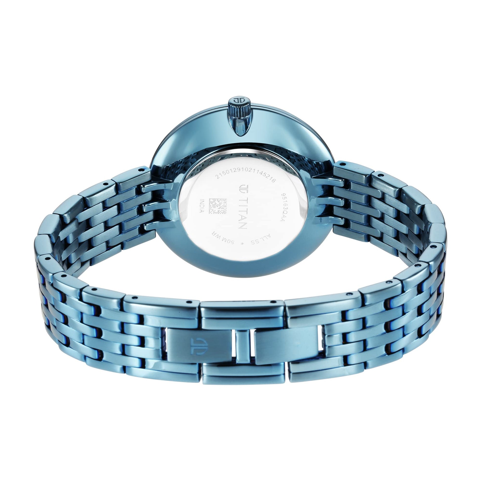Titan Quartz Analog Blue Dial Stainless Steel Strap Watch for Women-NS95163QM02