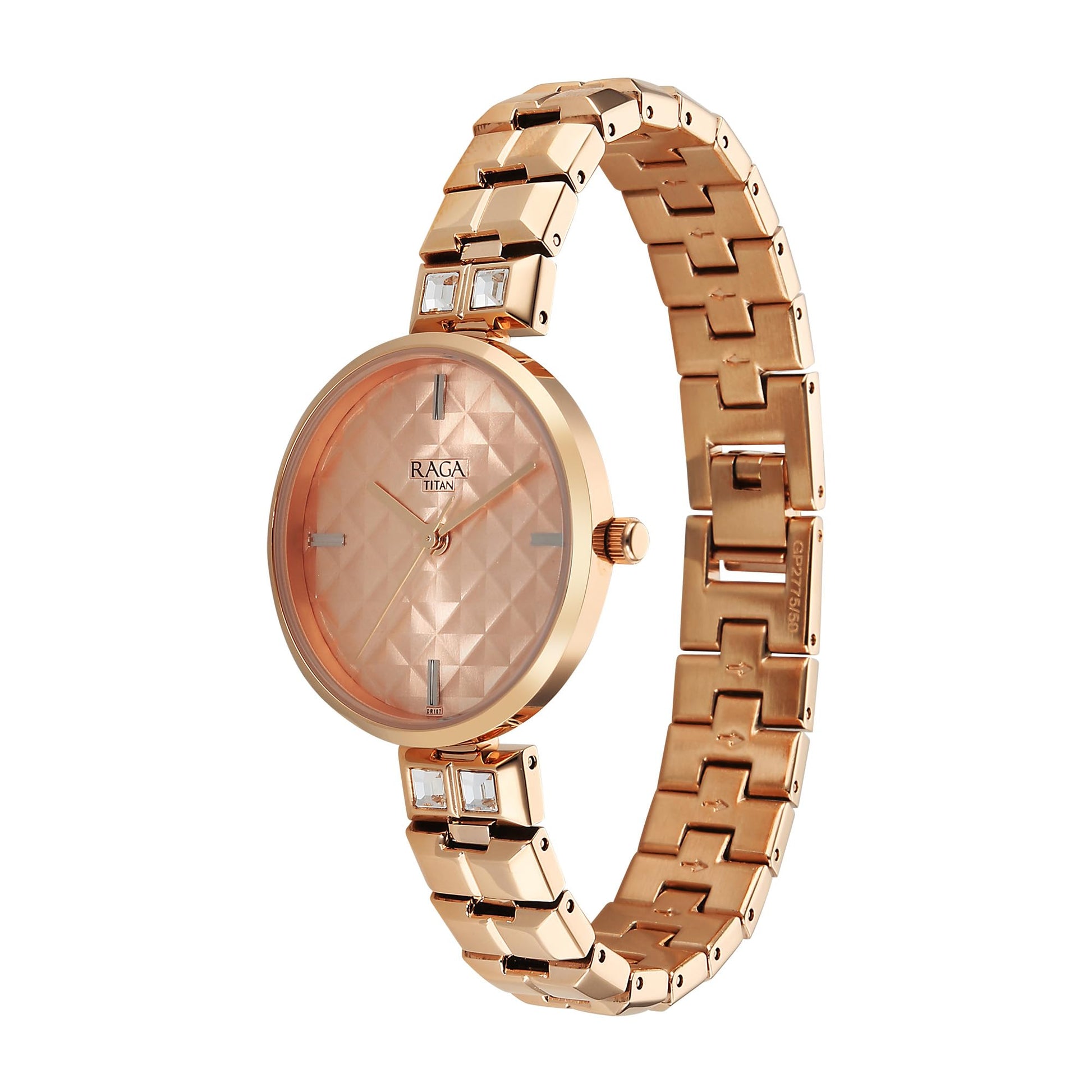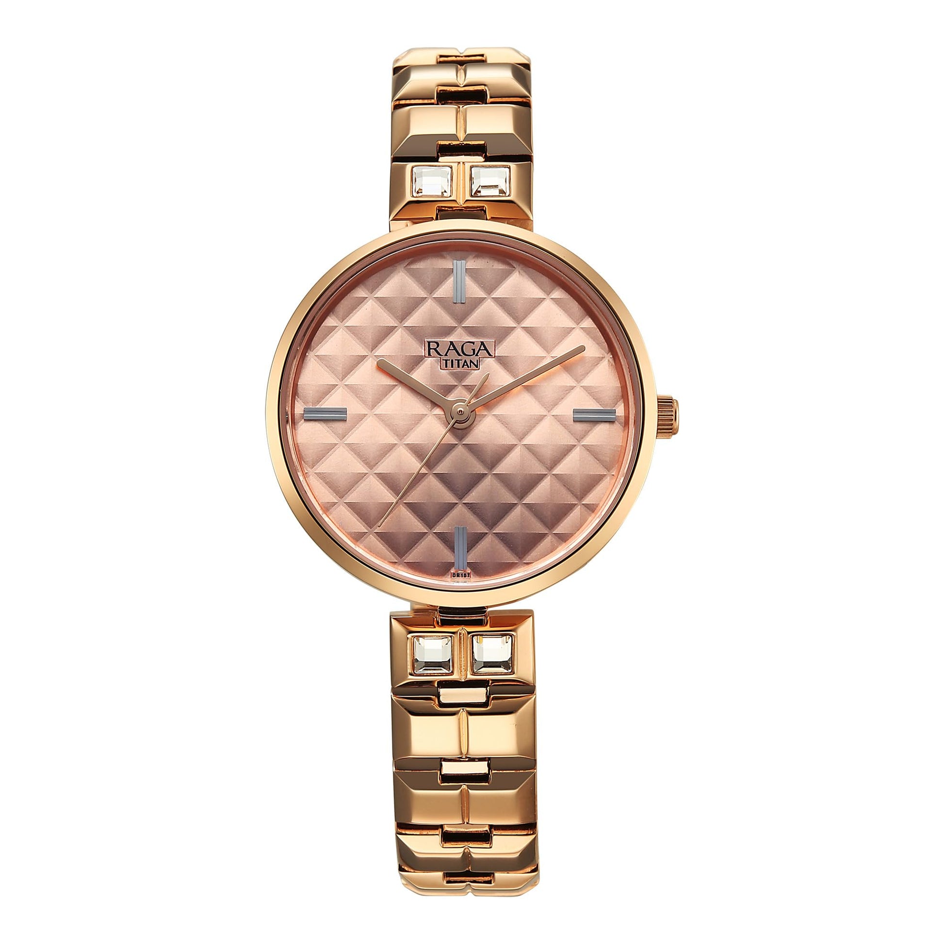 - Titan Raga Contempore Rose Gold Dial Brass Strap Watch For Women