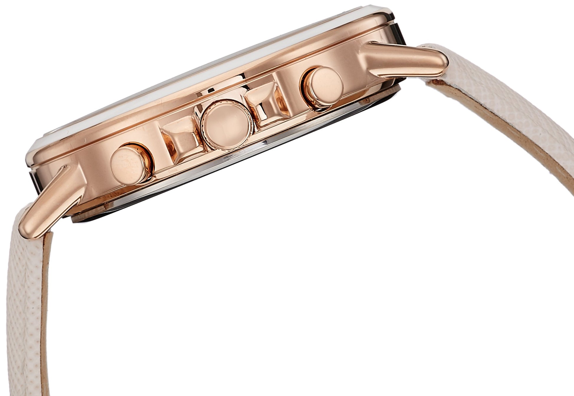 - Rose Gold IP Steel With White Epoxy Filled case; Case Diameter: 41.22 mm