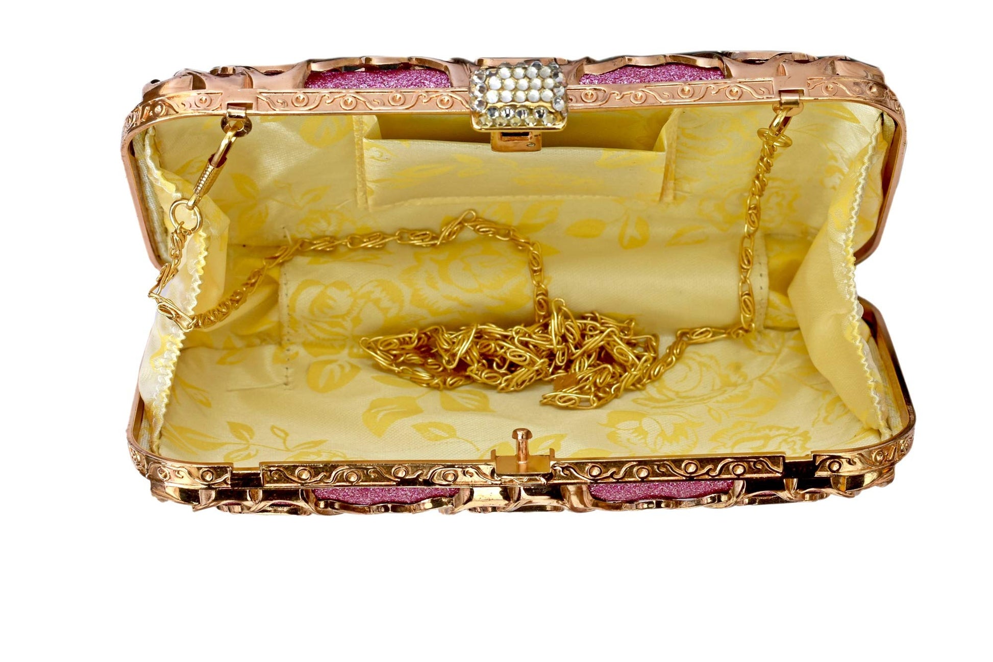 Closure It has a secure clasp closure keeping your essentials safe. Some may also come with an optional detachable chain or strap, allowing for versatility in carrying.