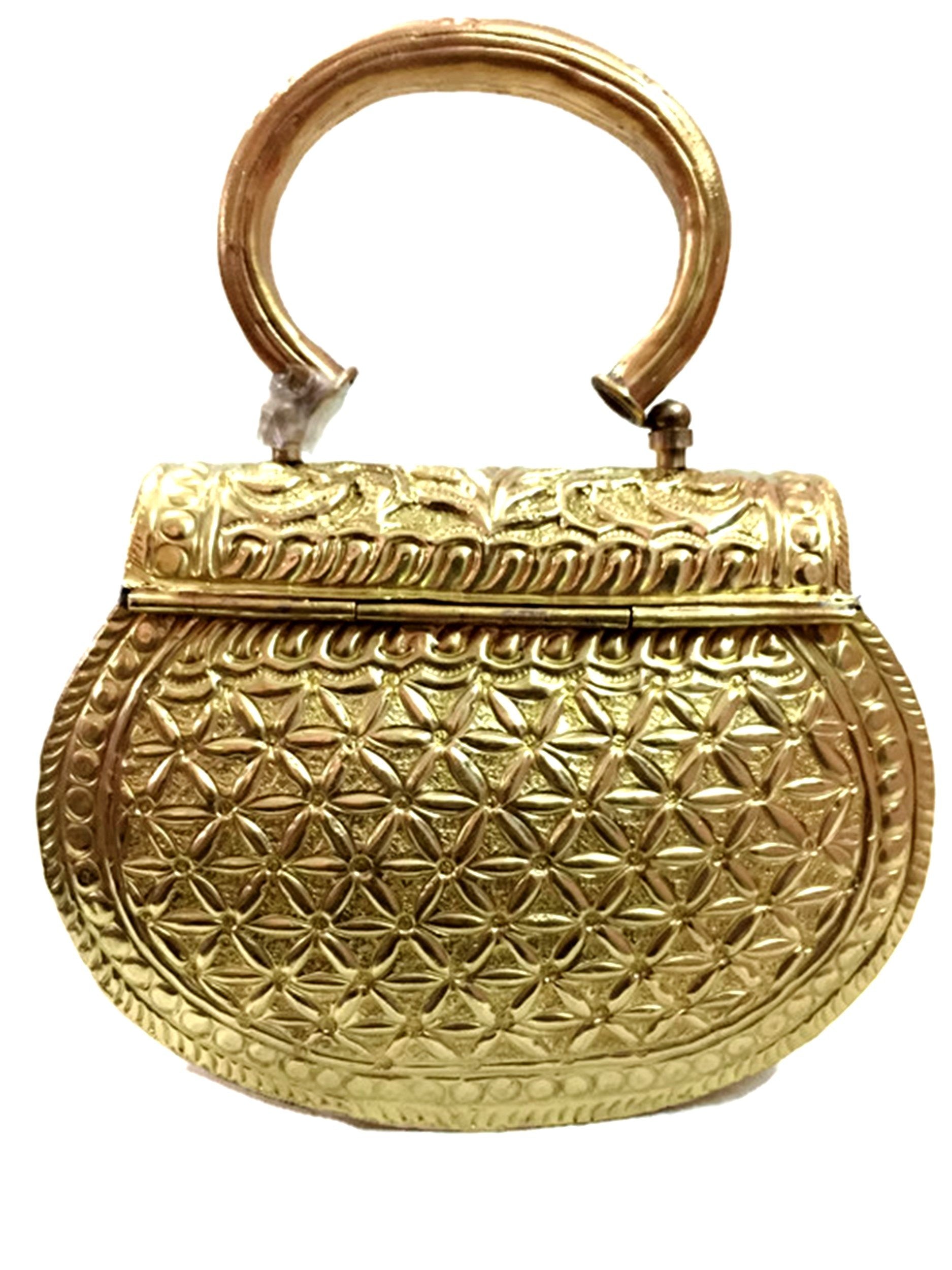 Trend Overseas Golden Hnadle clutches Vintage Handmade Brass Handbag for women party Bride marriage clutch