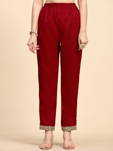 TRENDMALLS Women's Vichitra Silk Embroidery Salwar Suit Set for Women (G225-Red-XL-)