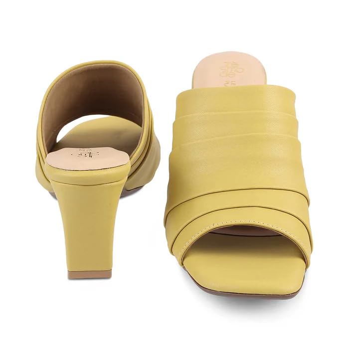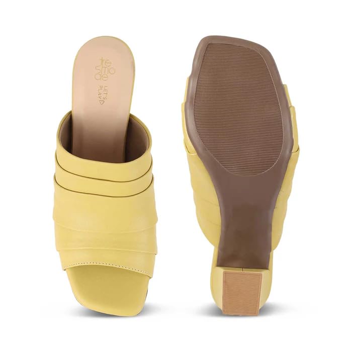 tresmode Coco Women's Block Heels Pump Sandals Stylish Yellow, 6 UK / 39 EU - Open Toe Ladies Footwear Soft Comfortable Shoes
