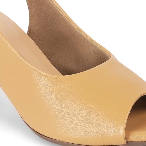 tresmode EDEN Women's Block Heel Sandals Stylish Footwear Beige, 7 UK / 40 EU - Peep Toe Soft Comfortable Casual Formal Office Fancy Shoe Wear