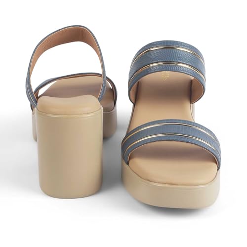 tresmode MAURO Women's Block Heel Sandals Footwear Blue, 4 UK / 37 EU - Square Toe Soft Comfortable Casual Formal Office Shoe Wear Durable