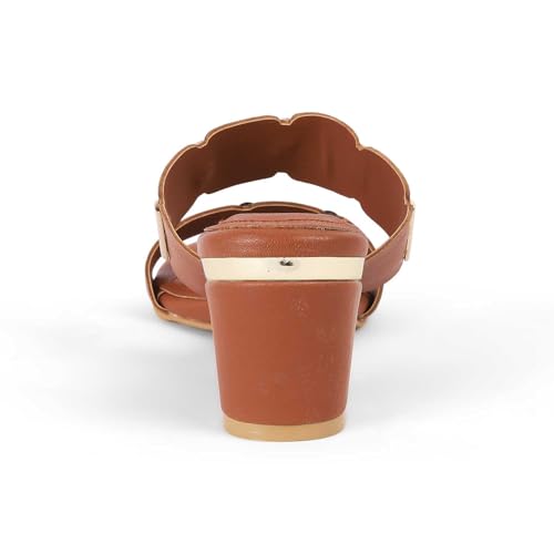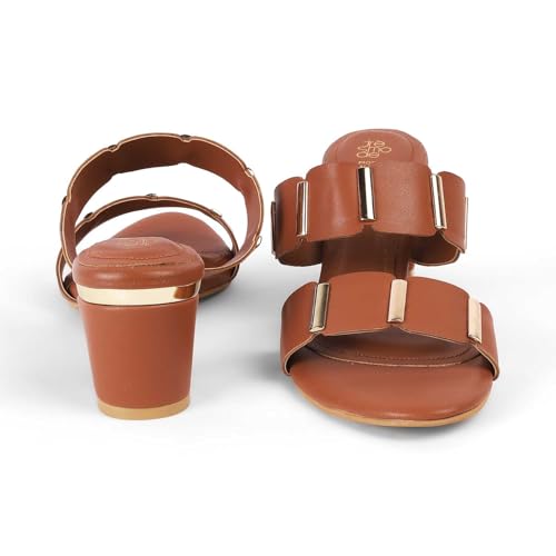 tresmode VALER Women's Block Heels Pumps Leather Stylish Tan, 4 UK / 37 EU - Round Toe Ladies Footwear Soft Comfortable Sandals