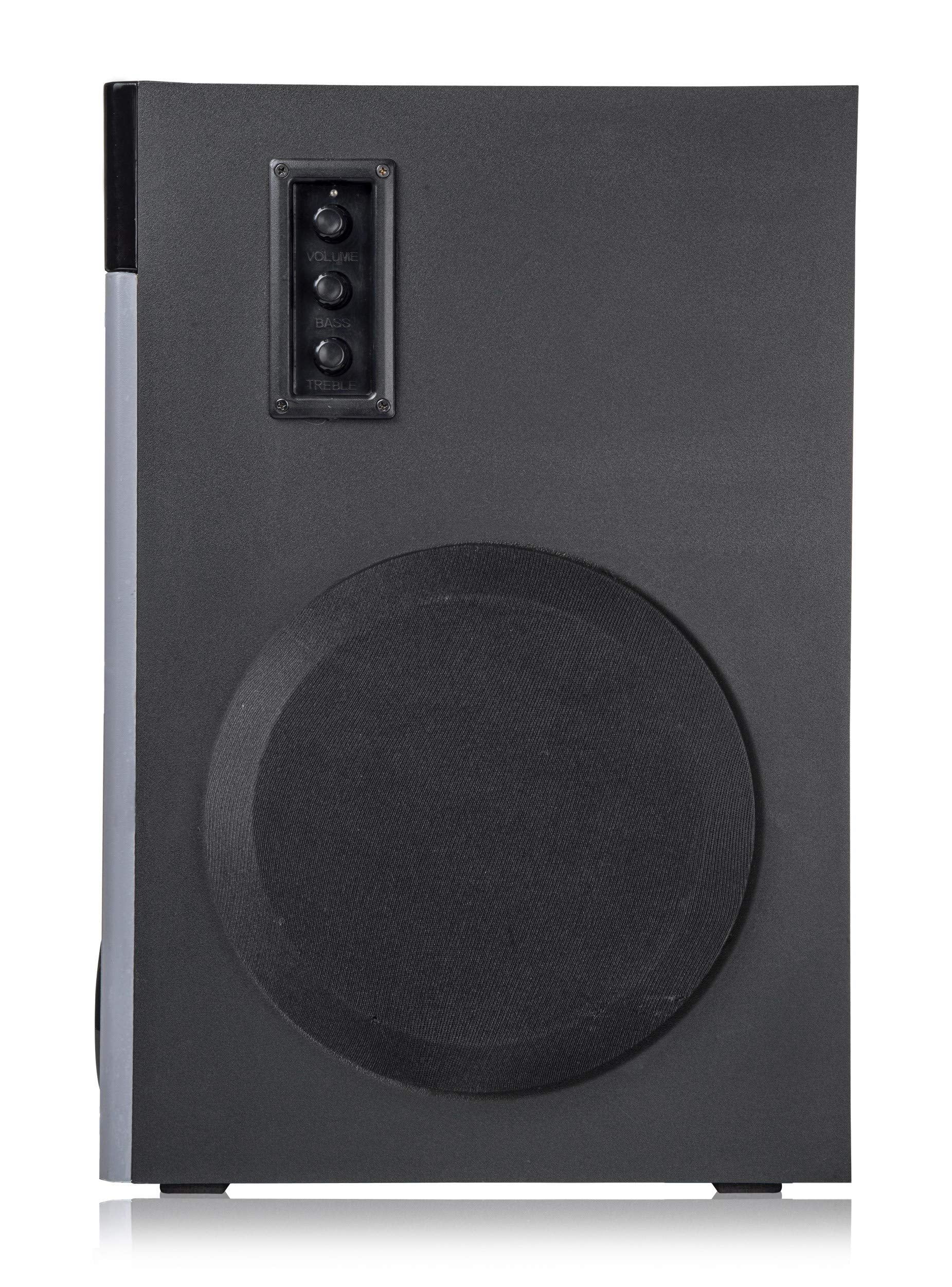 - Loaded with Side firing Woofer for Extra Bass & has user friendly volume/bass/treble controls