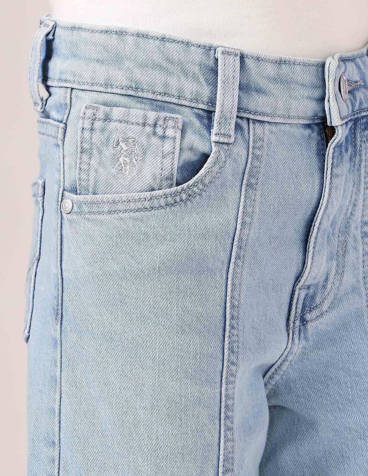 U.S. POLO ASSN. Girls Wide Leg Fit Cargo Jeans (UGJEN0213_Light Blue_9-10Y)