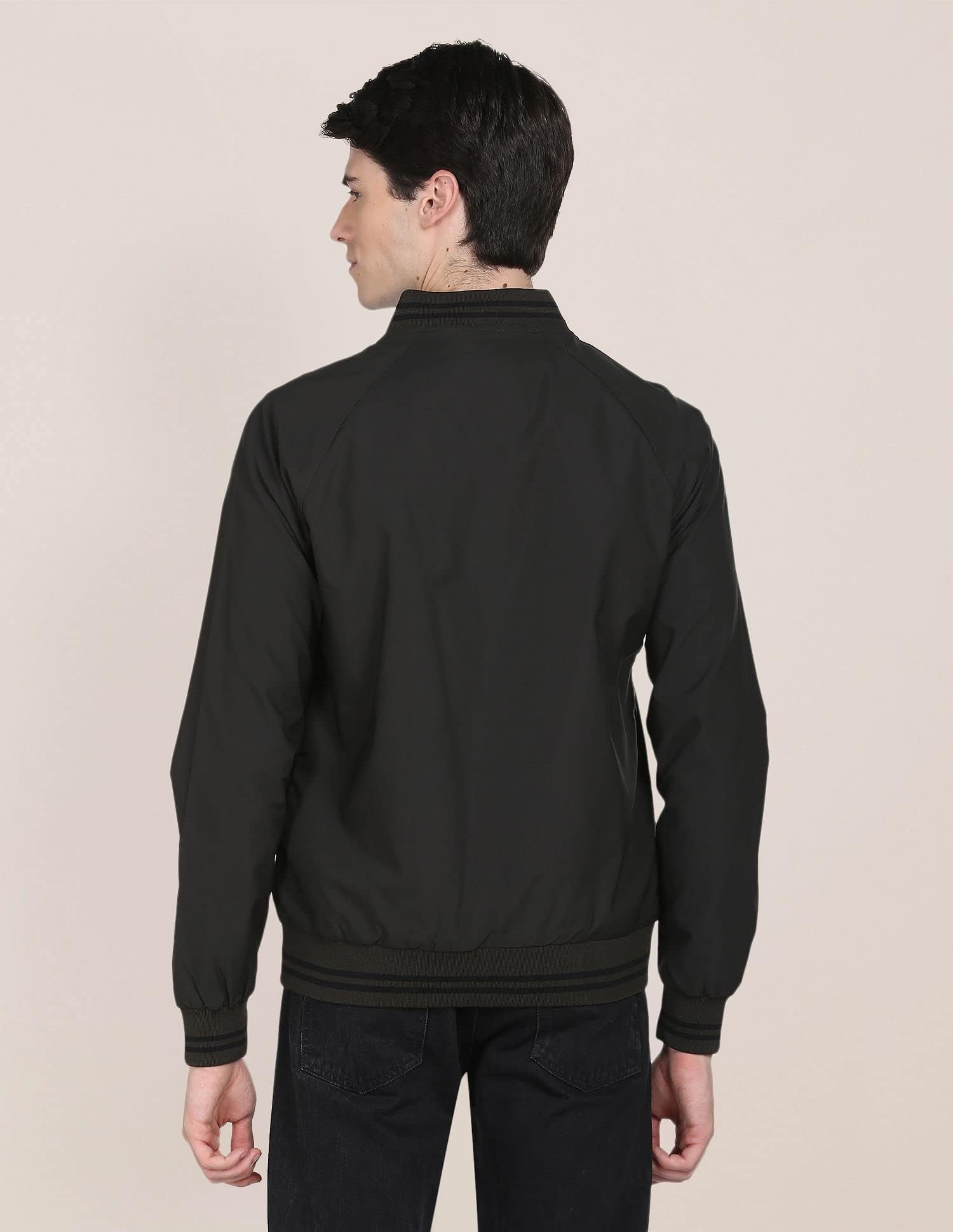 U.S. Polo Assn. Men Dark Green Striped Hem Solid Bomber Jacket