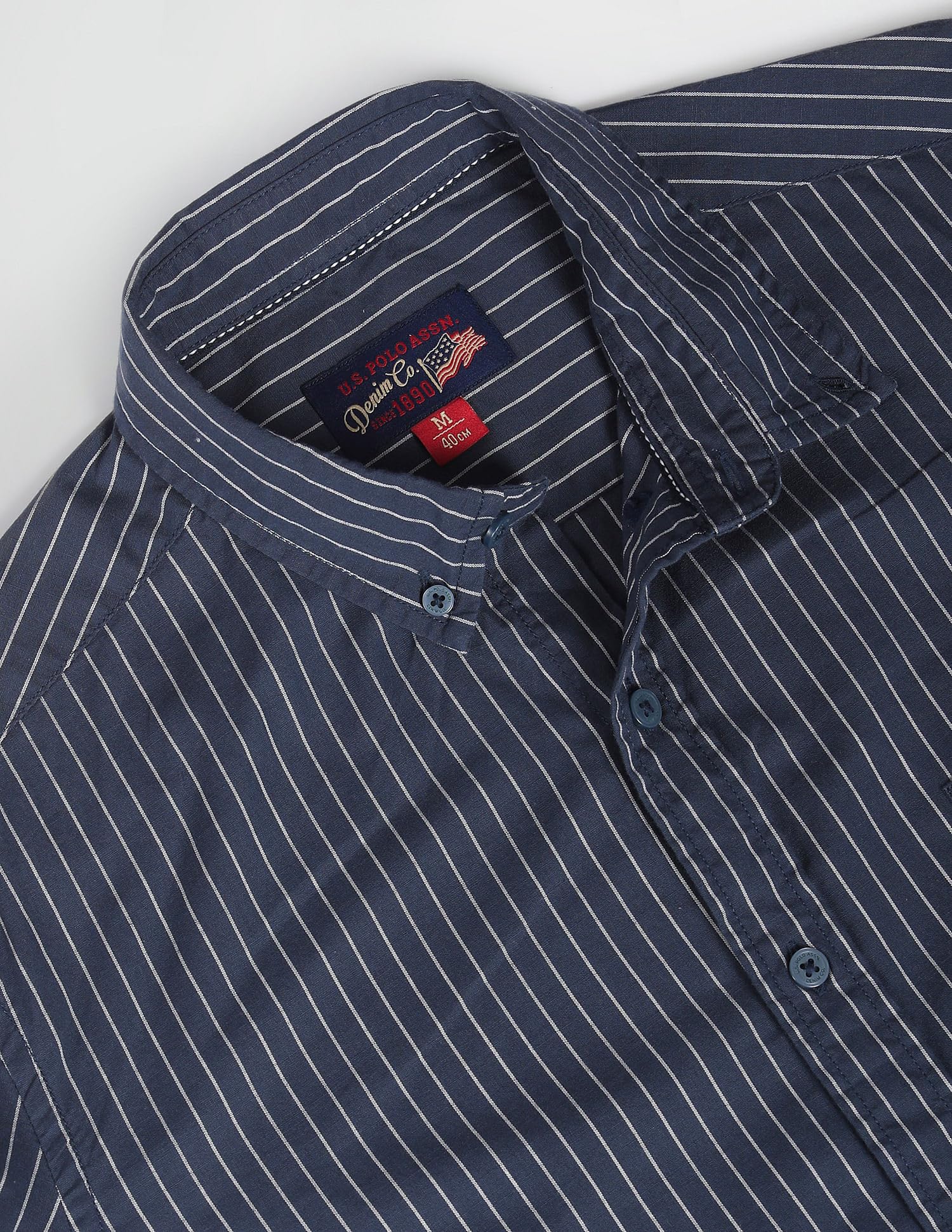 U.S. POLO ASSN. Men's Cotton Striped Slim Fit Shirt (UDSHT0922_Navy, 42