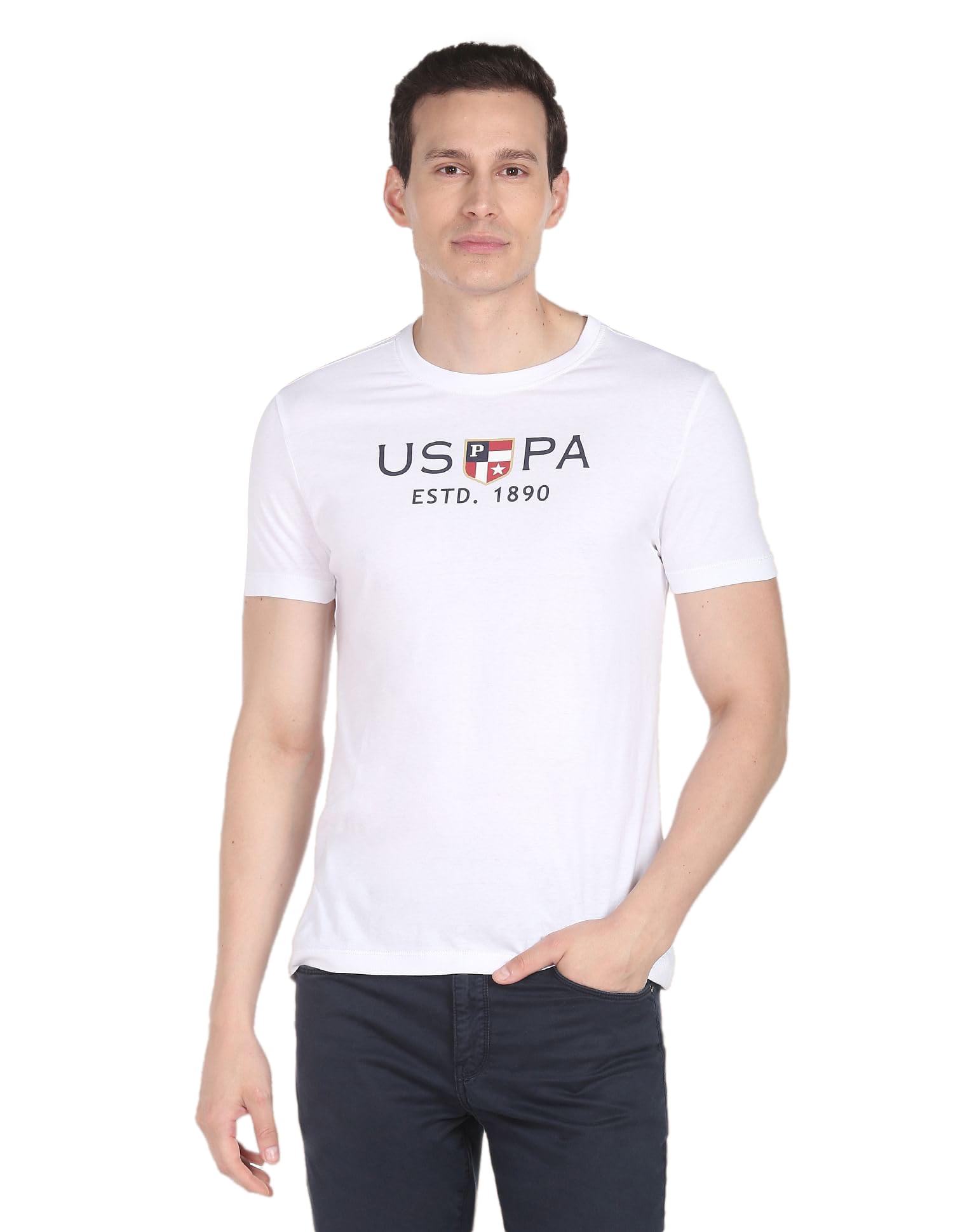 U.S. POLO ASSN. Men's Crew Neck Brand Print Cotton T-Shirt (USTSHS1374_White_L)