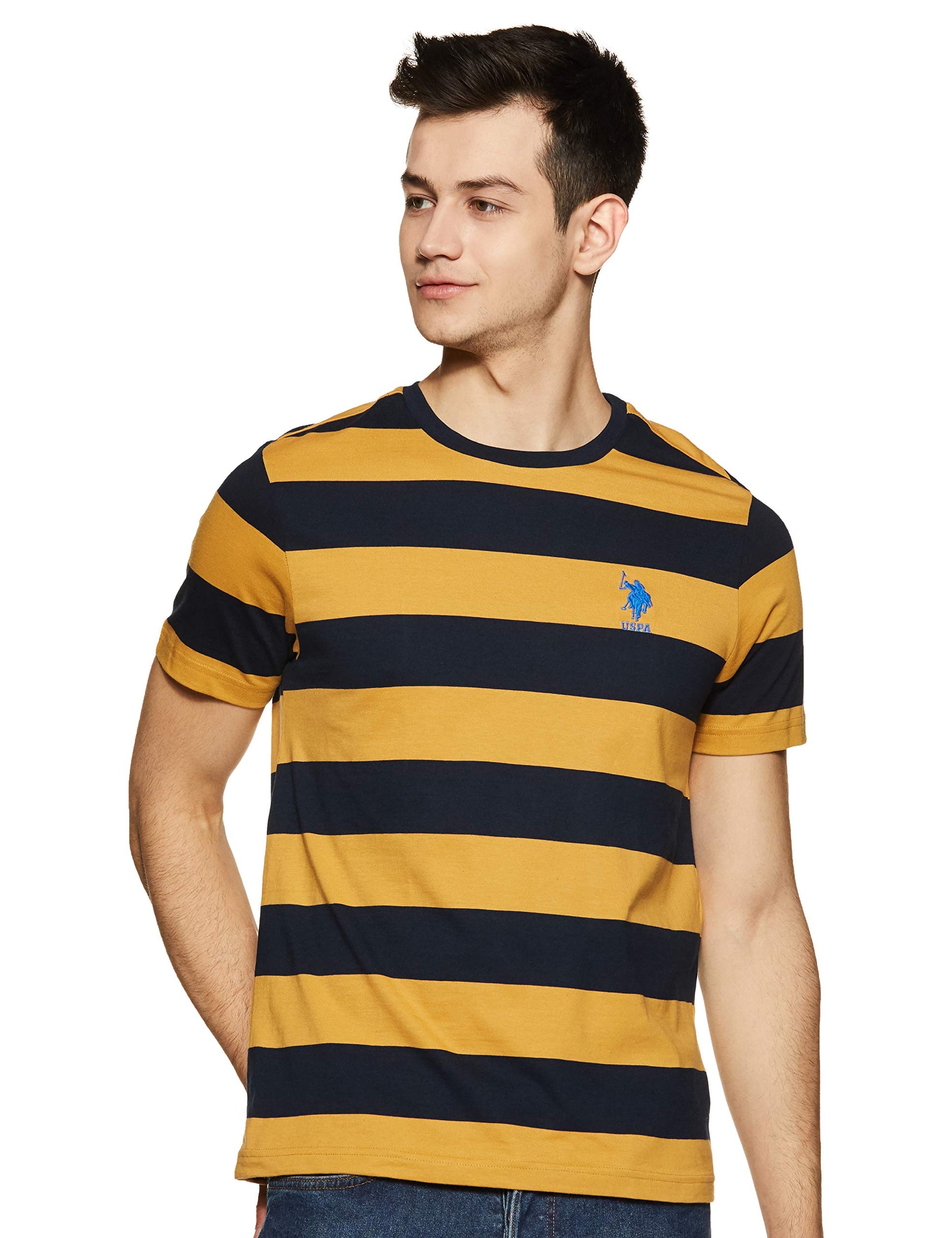 U.S. POLO ASSN. Mens Crew Neck Striper I688 Lounge Regular Fit T-Shirt-Pack of 1 (Mineral Yellow/Navy M)