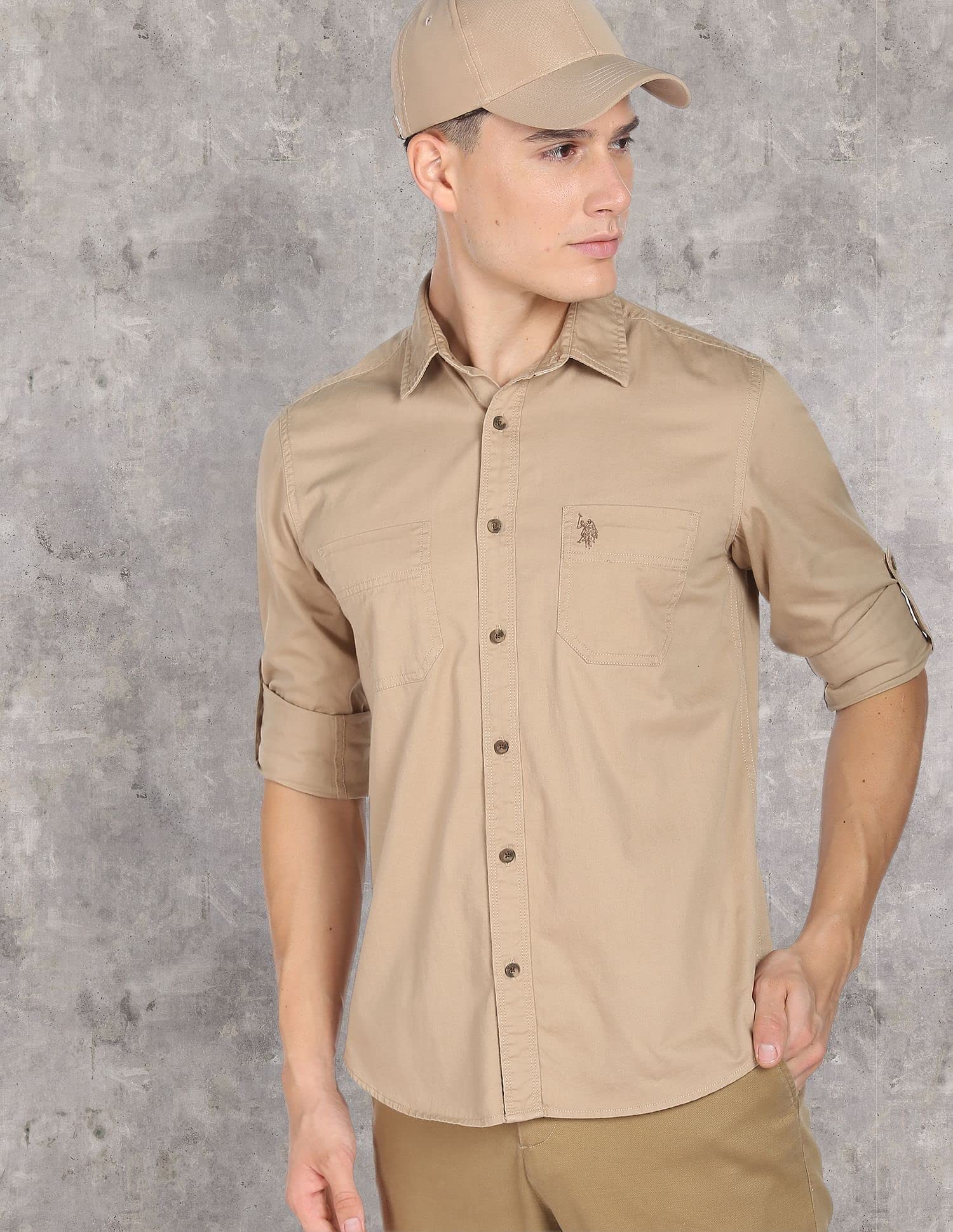 U.S. POLO ASSN. Men's Regular Fit Shirt (UDSHT-G107_Khaki