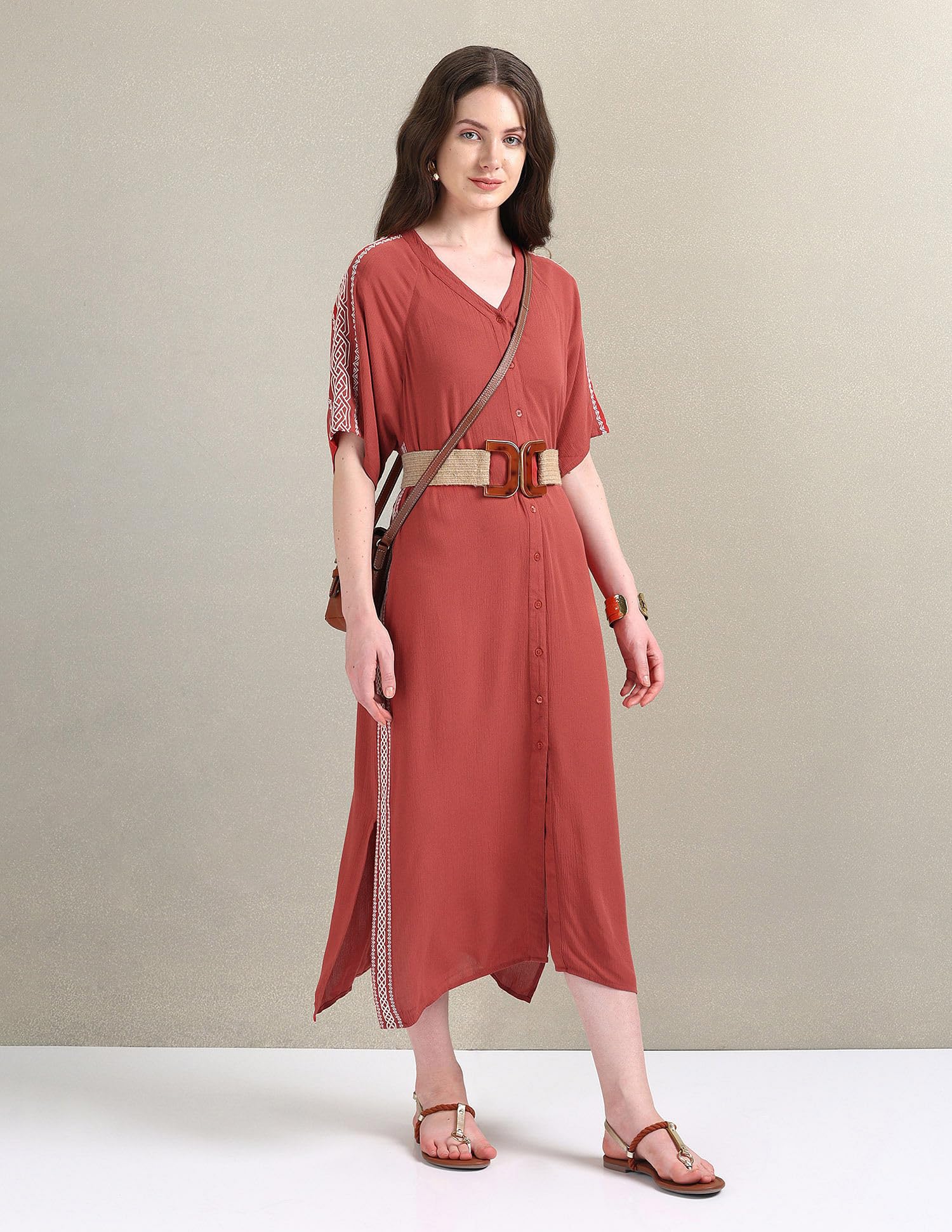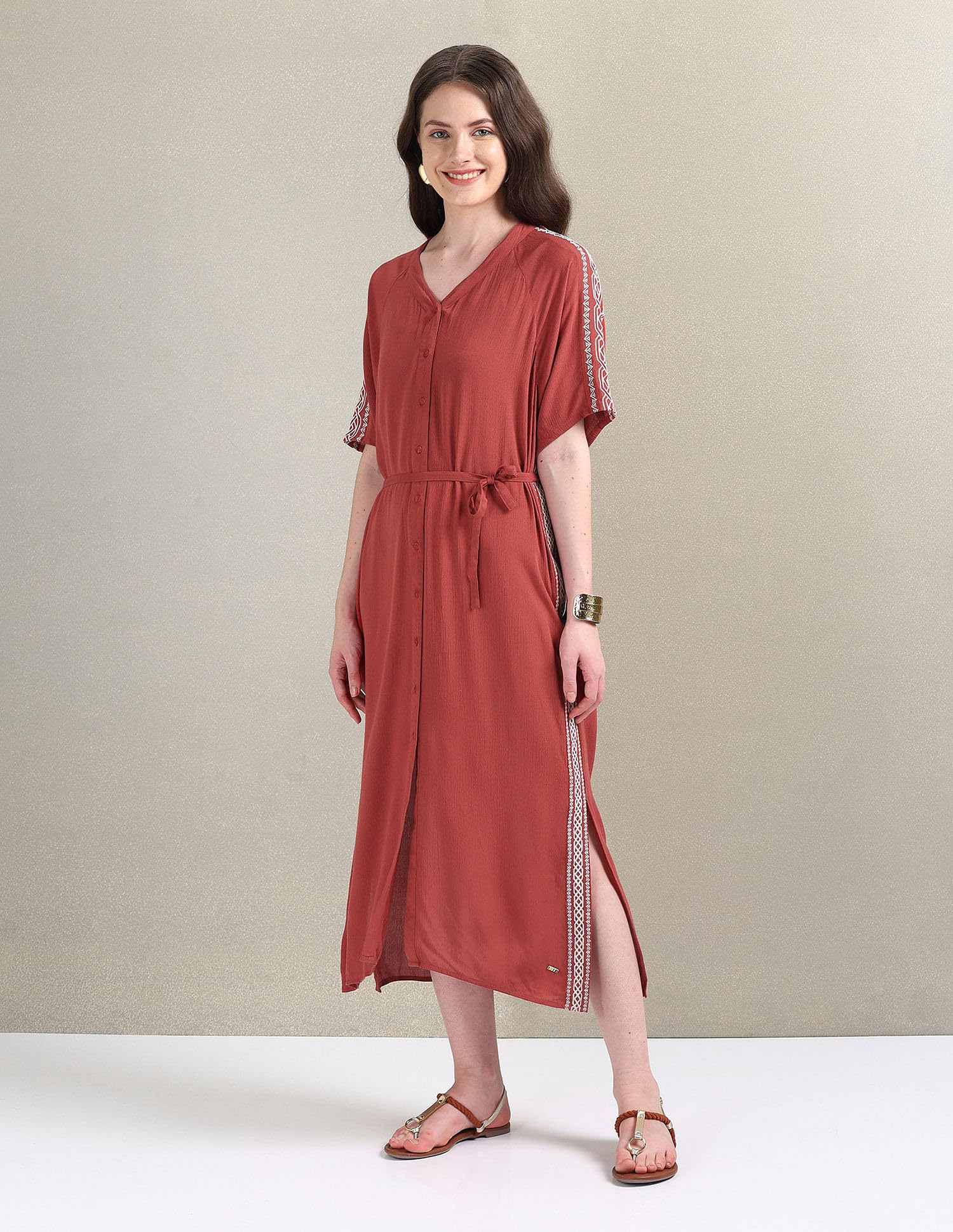 U.S. POLO ASSN. Women's Crinkle Viscose Embroidered Dress (UWSS24DRS125_Brown_L)