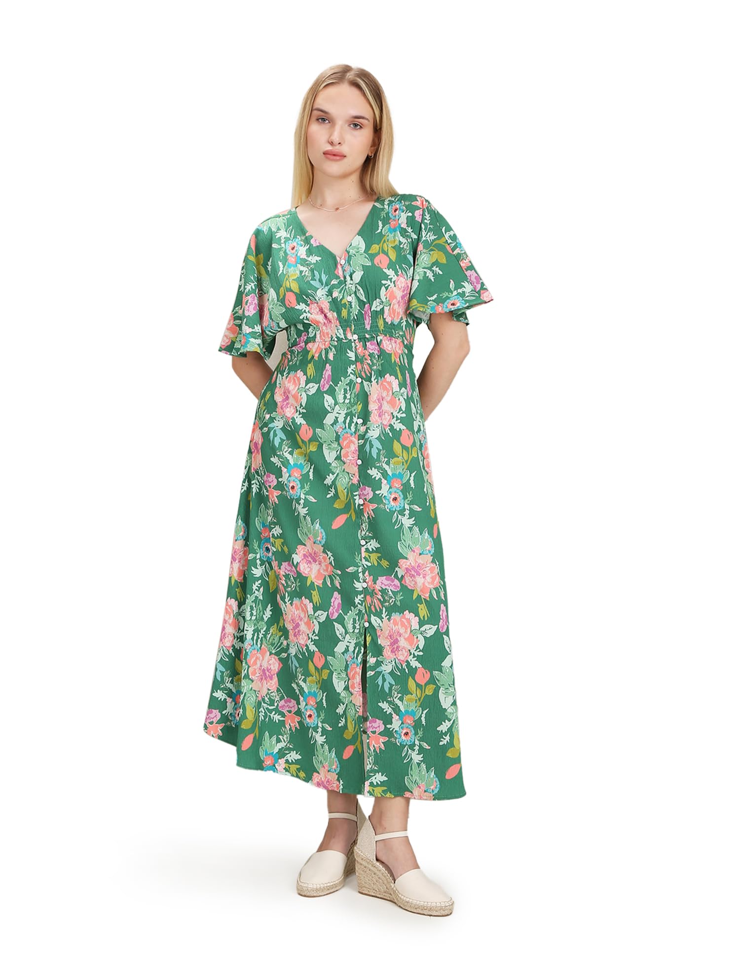 U.S. POLO ASSN. Women's Floral Print Fit and Flare Dress (UWSS23DRS043_Green_M)