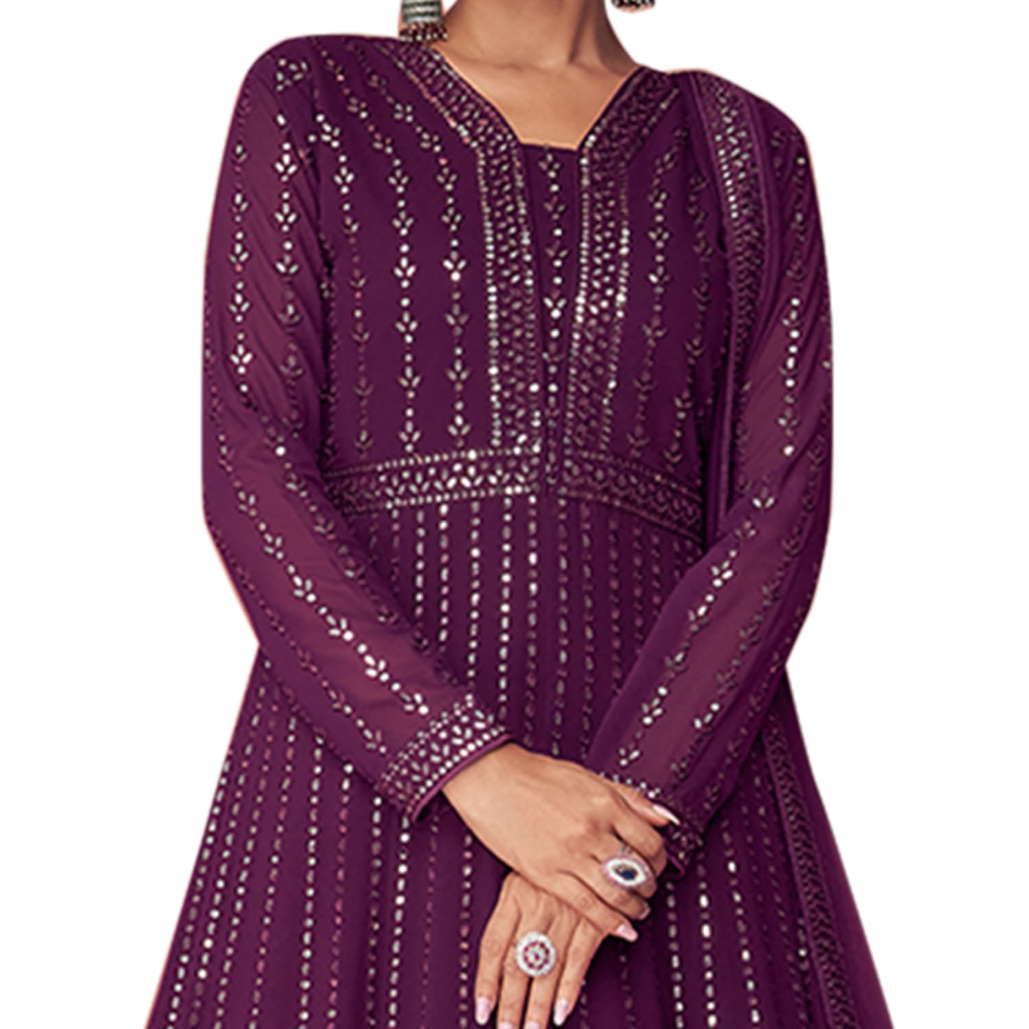 Uday Enterprise Women Faux georgette With Soft Silk Semi stitched Embroidery and Sequence Work Purple Color Designer Gown