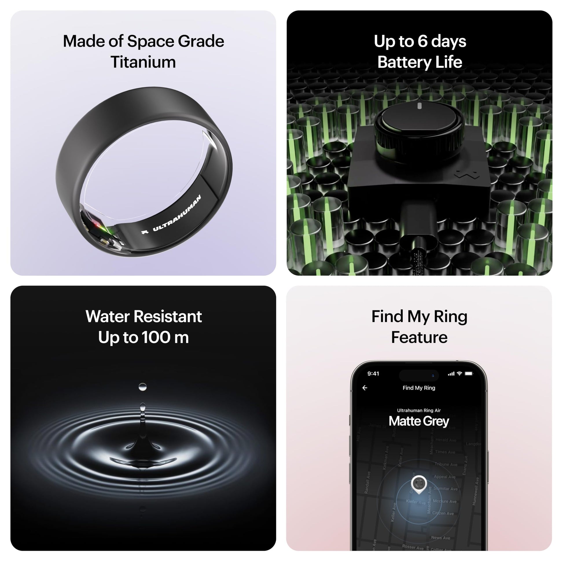 ULTRAHUMAN Ring AIR-Smart Ring Activity Tracker, Size First Sizing Kit,Sleep Tracker,Smart Ring for Men/Women,Fitness Tracker (Matte Grey, 9)