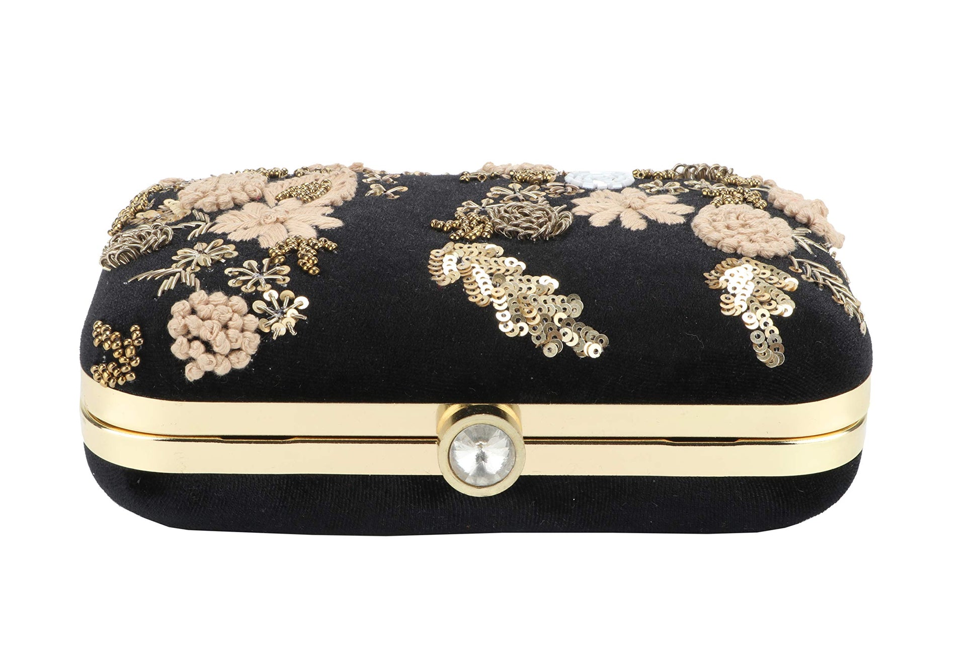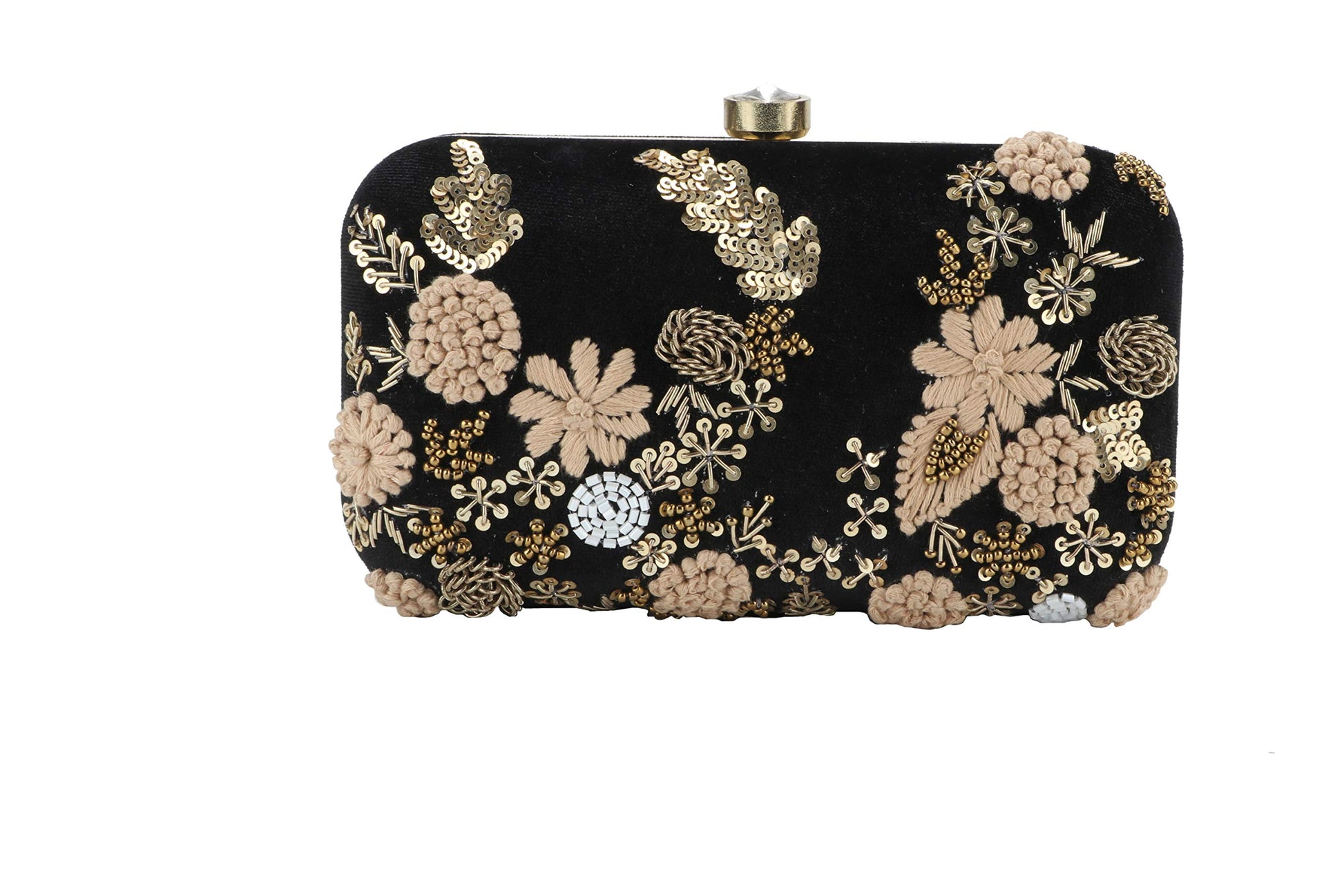 Fine quality stylish Black beet colour clutch for girls and women with zari work and easy secure locking