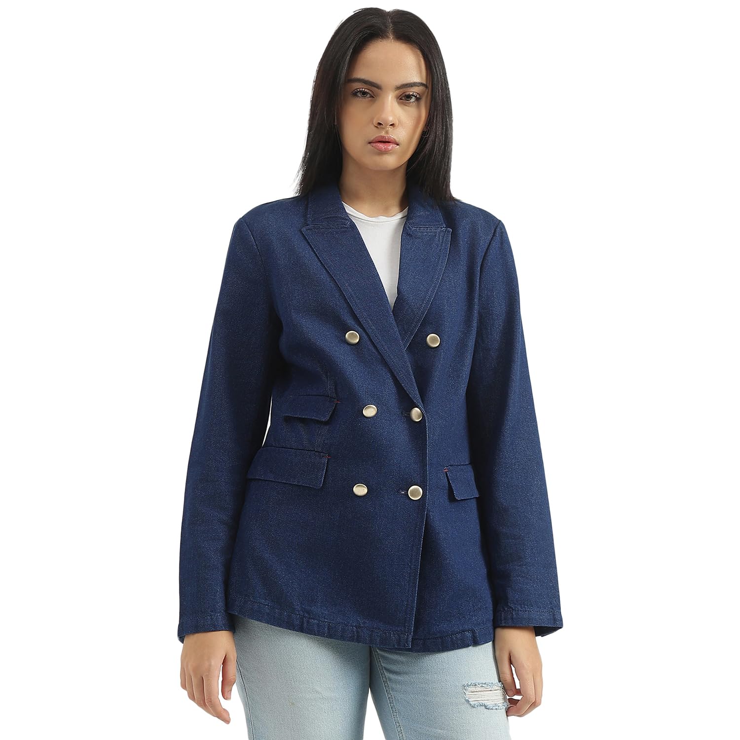 Elevate your style with this sophisticated blue blazer. Crafted from luxurious lyocell fabric, it features a classic lapel collar, full sleeves, and a button closure. The solid pattern adds a touch of timeless elegance, making it perfect for both work and special occasions.