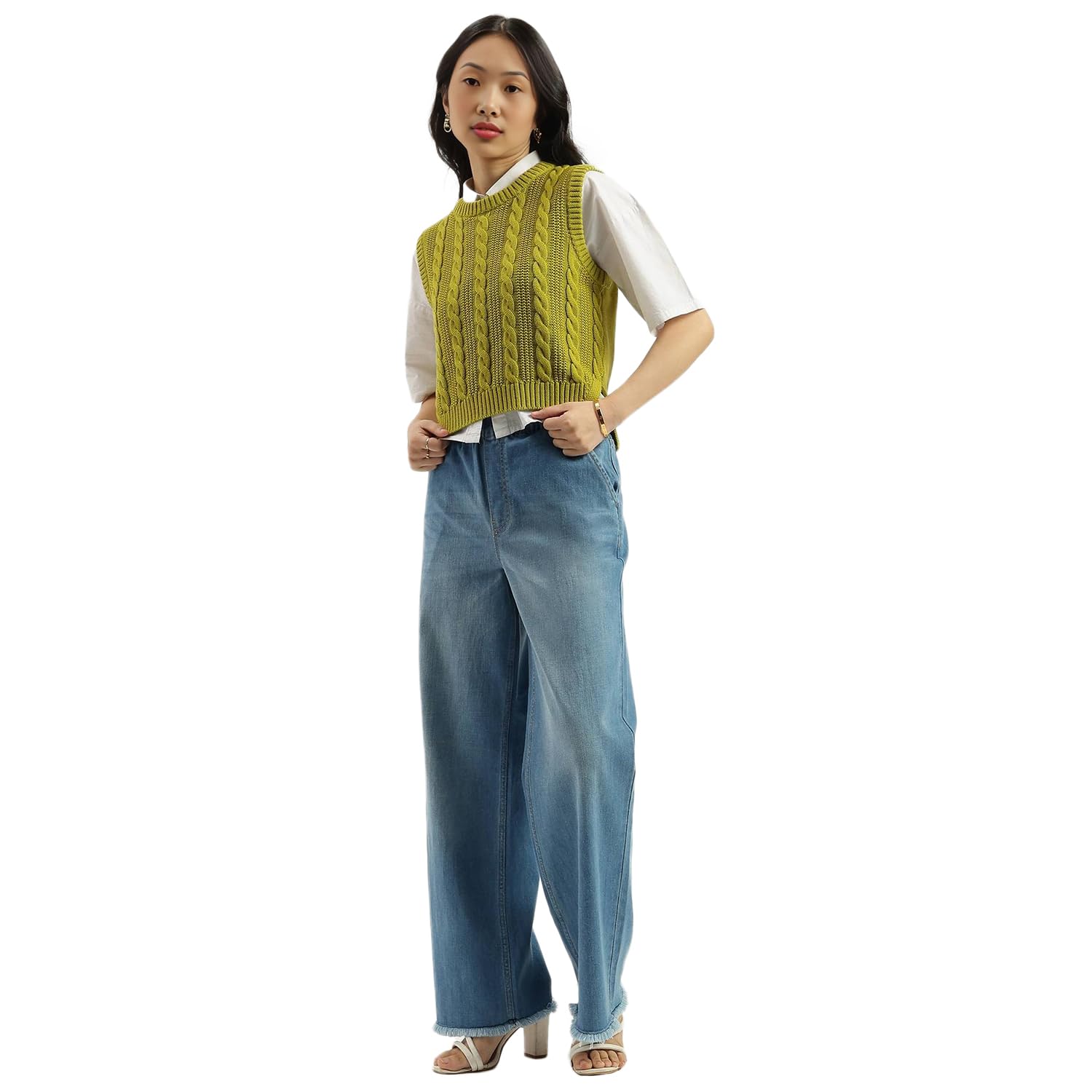 United Colors of Benetton Round Neck Textured Cable Knit Sweater