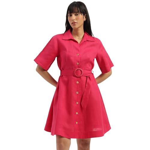 UNITED COLORS OF BENETTON Shirt Collar Solid A-Line Dress (Size: S)-25P4WVNDR150I02E Pink