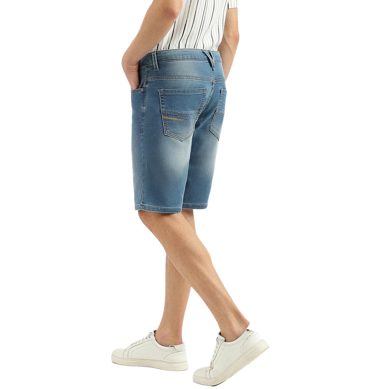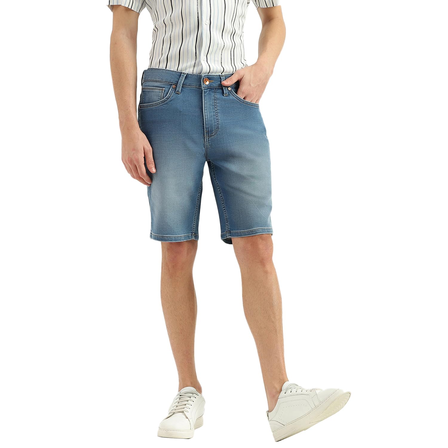 UNITED COLORS OF BENETTON Solid Mid Rise Slim Fit Shorts (Size: 42)-24P4KNST6032I901 Blue
