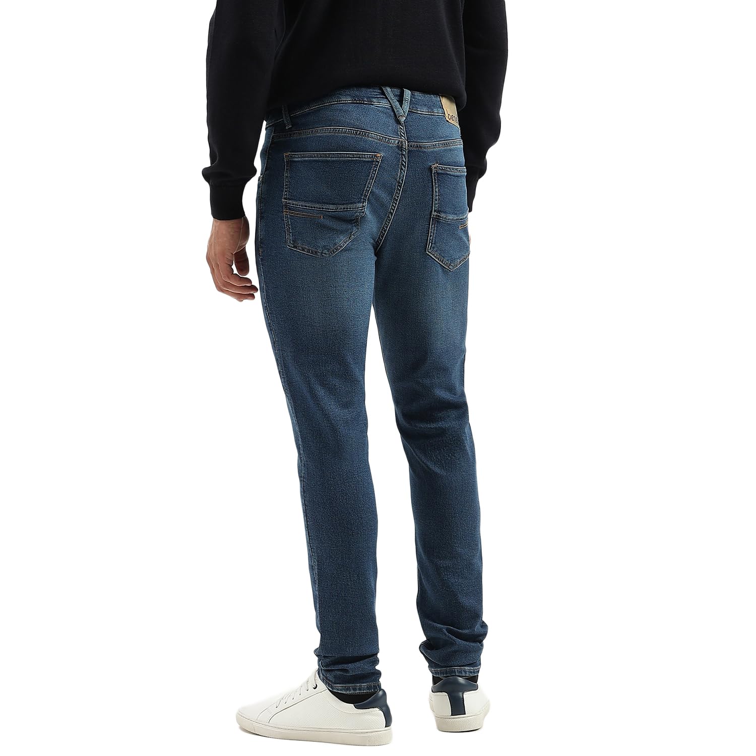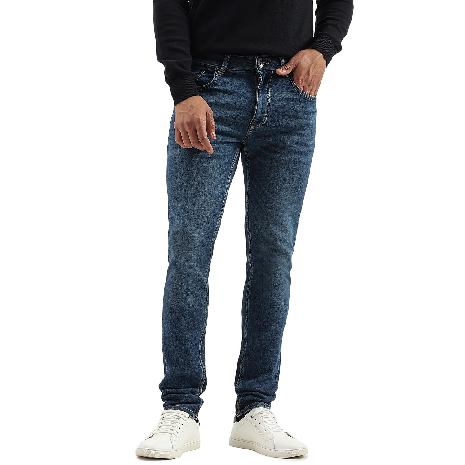Elevate your style with our blue skinny-fit jeans for men. Crafted from durable polycotton fabric, these jeans offer a sleek mid-rise design with a solid pattern. Featuring a secure button closure, they provide a perfect blend of comfort and modern fashion, making them an essential addition to your wardrobe.