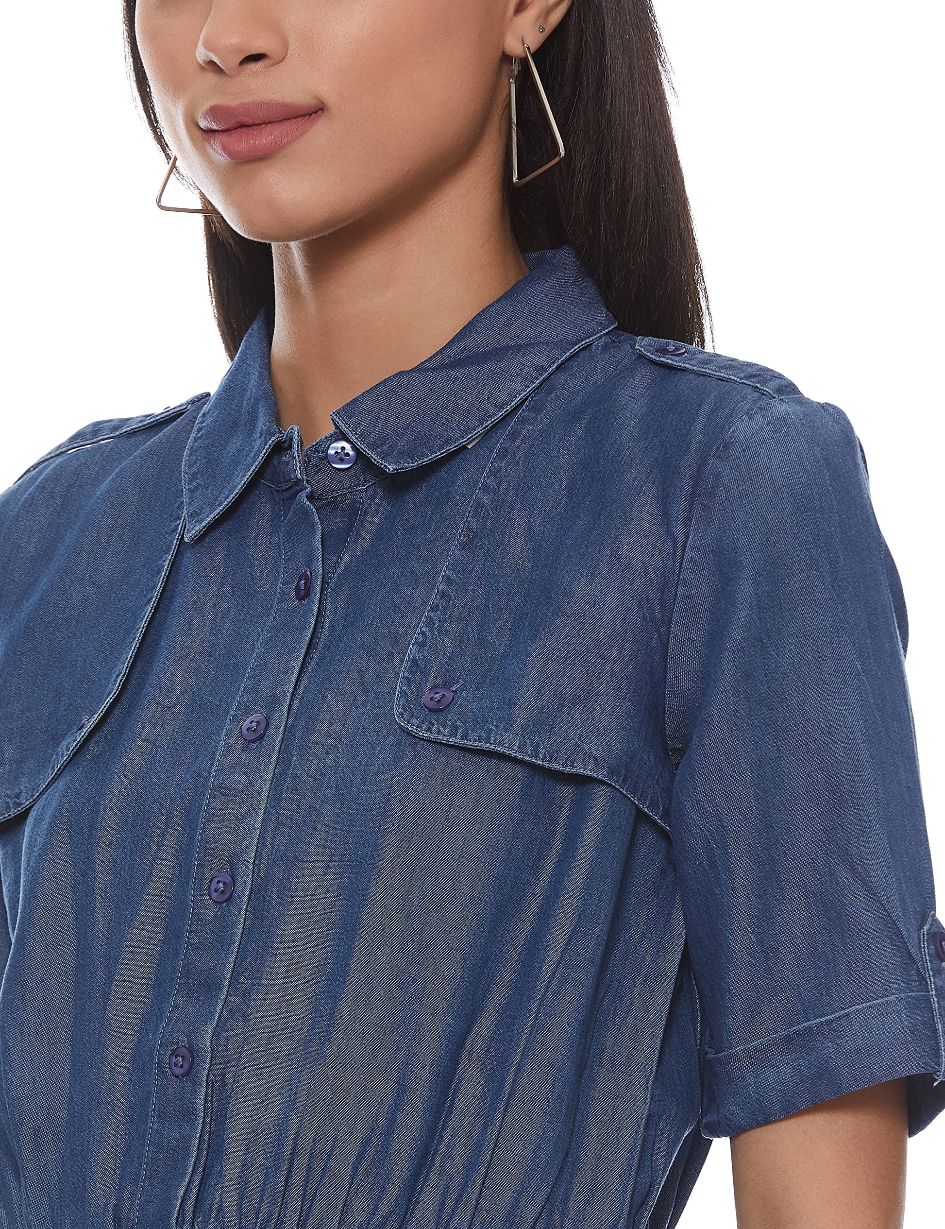 United Colors of Benetton Women's Synthetic A-Line Midi Casual Dress (21P4LY1E4510I_Navy_XL)