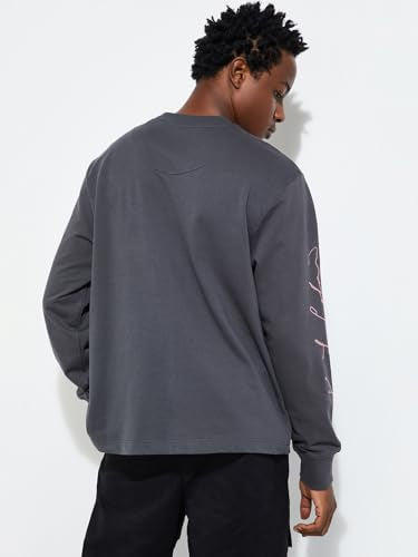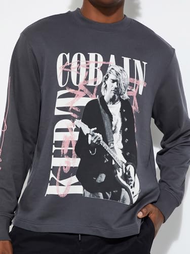 URB_N Men Oversized Graphic Printed Sweatshirt,Charcoal,M