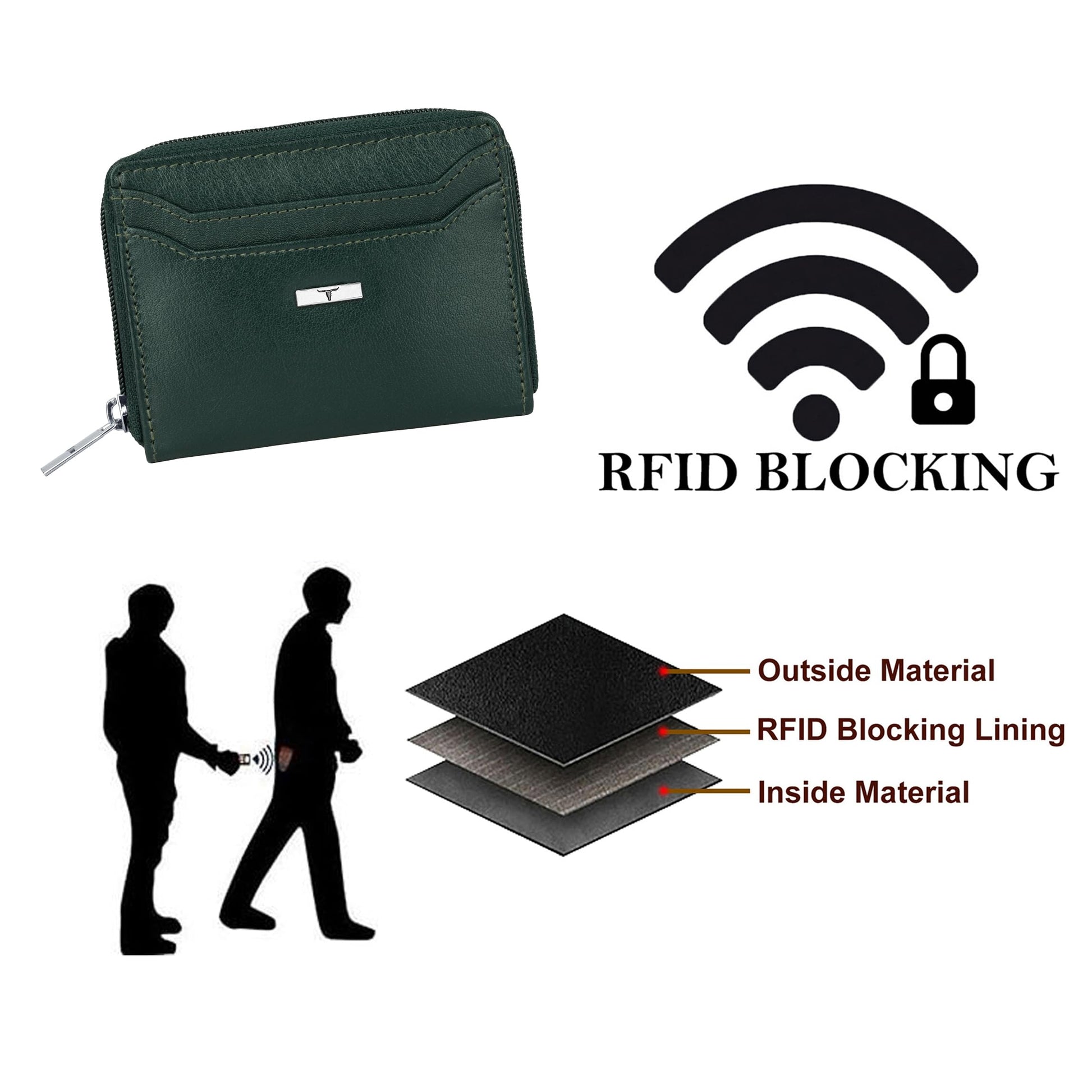- COMPARTMENTS - The Wallet has 1 main zippered compartment, 2 external card slots, 6 internal card slots, 1 internal zippered pocket