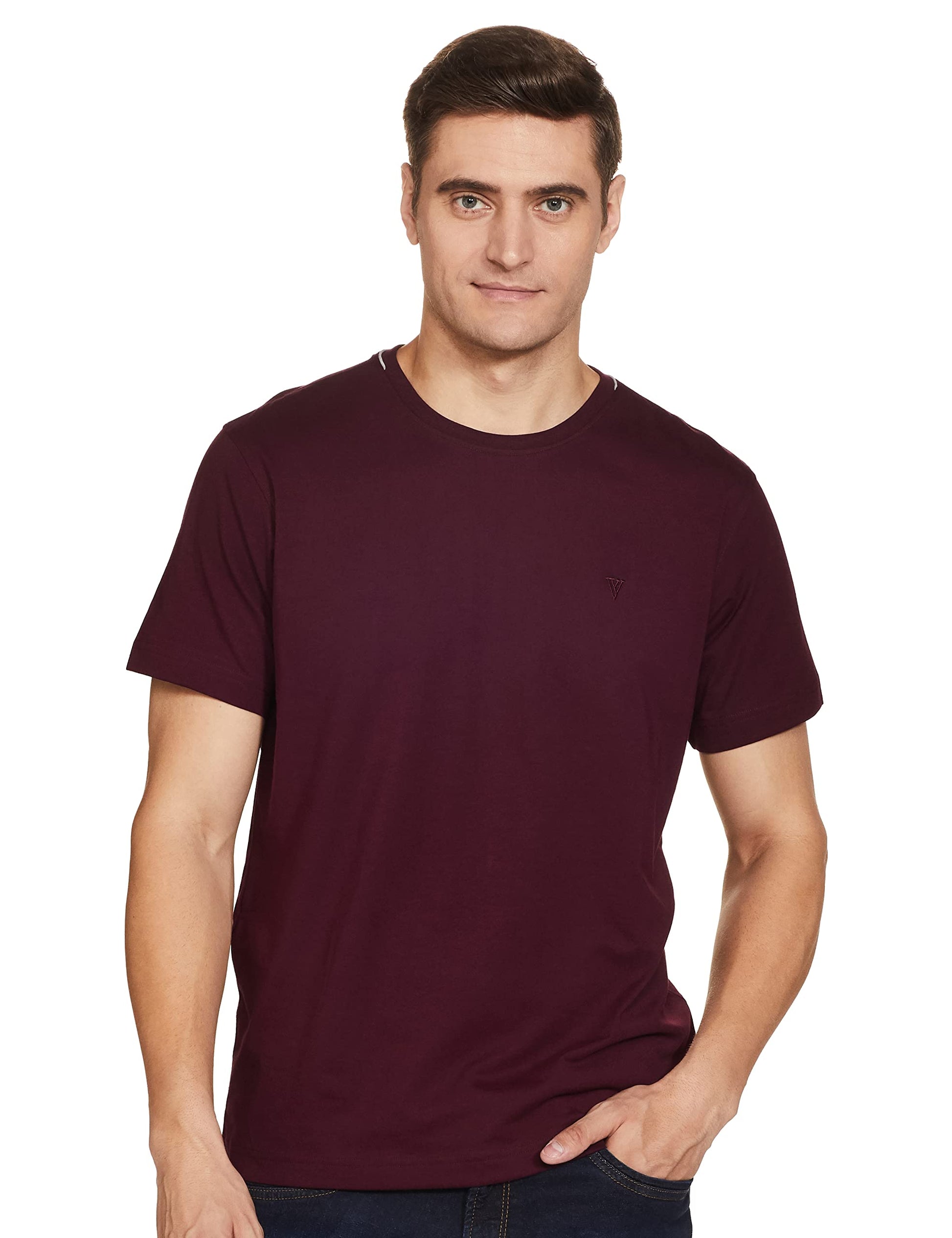 Van Heusen Athleisure Men Regular Fit T-Shirt-Cotton Rich-Smart Tech,Easy Stain Release,Anti Stat,Ultra Soft,Moisture Wicking_60021_Port Wine_L