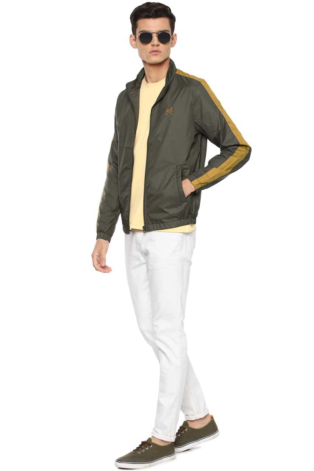 Give a smart finish to your attire with this olive jacket from academy by van heusen by van heusen.