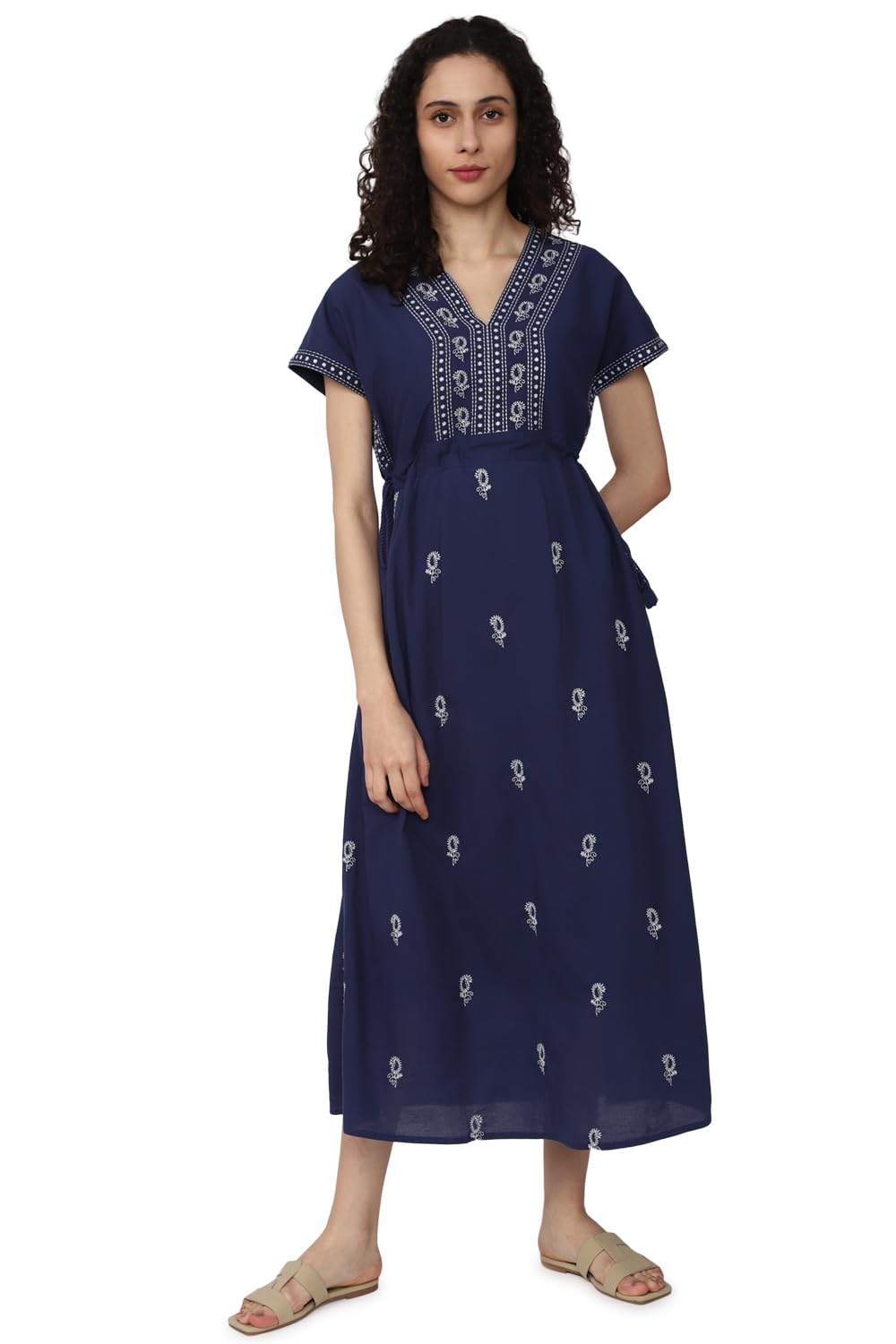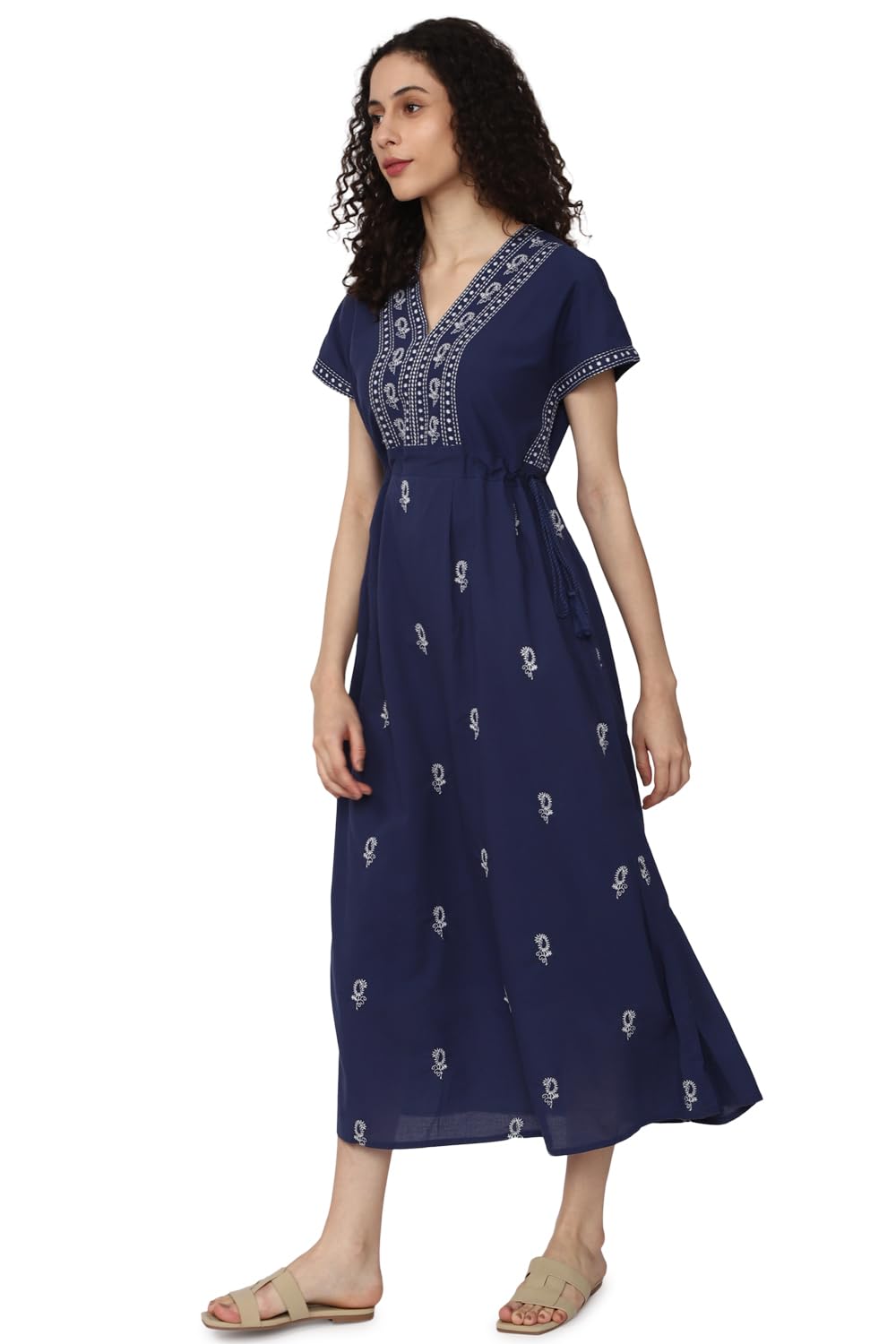Van Heusen Women's Cotton A-Line Calf Length Dress (VWDRNRGFU22085_Navy