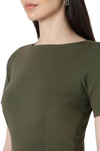 Van Heusen Women's Cotton Blend Modern Knee-Length Dress (VWCDFRGFR34902_Olive