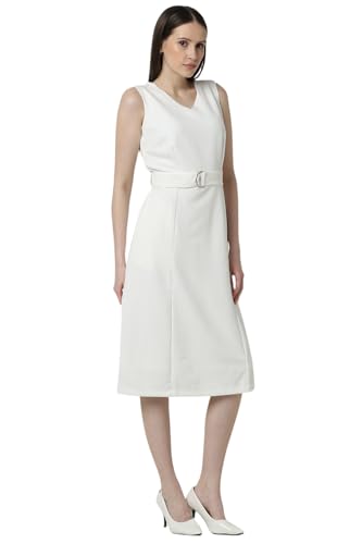 Van Heusen Women's Polyester Blend Modern Below The Knee Dress (VWDRCRGPX11886_White