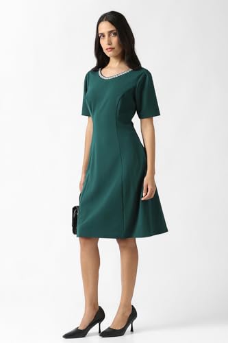 Van Heusen Women's Polyester Blend Modern Knee-Length Dress (VWCDERGFG36230_Green