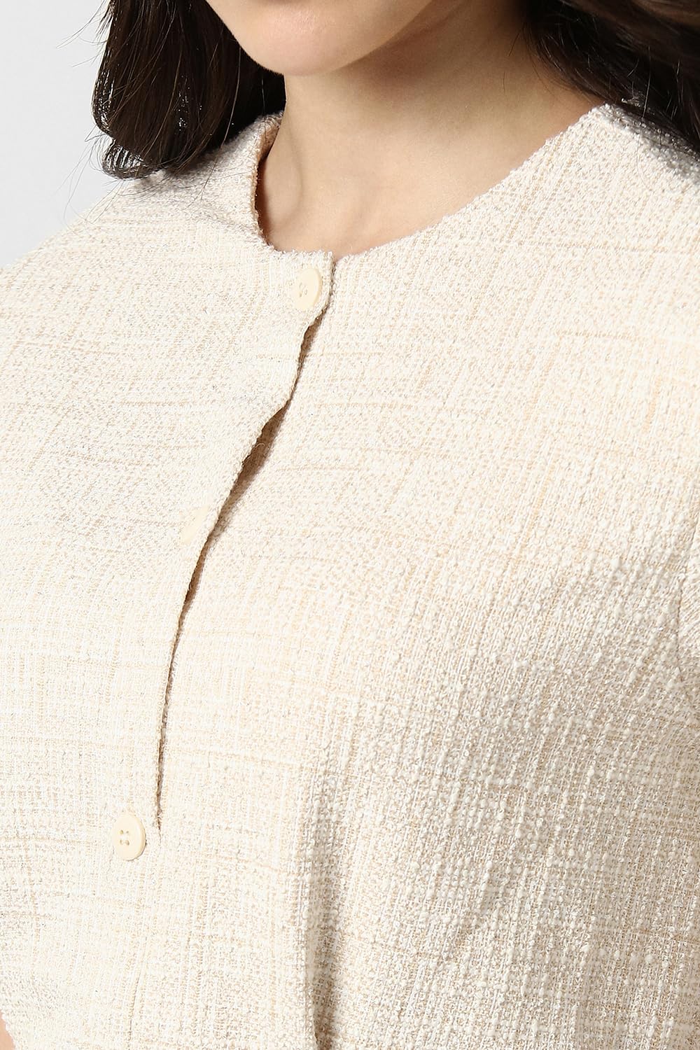 Elevate your formal wardrobe with this Van Heusen dress in elegant beige. Crafted from refined polyester, it features a sophisticated textured pattern and a classic round neckline. The dress combines style with comfort, making it perfect for any formal occasion. Effortlessly chic, this piece will surely enhance your look with its timeless appeal. Embrace the essence of sophistication and make a memorable impression.