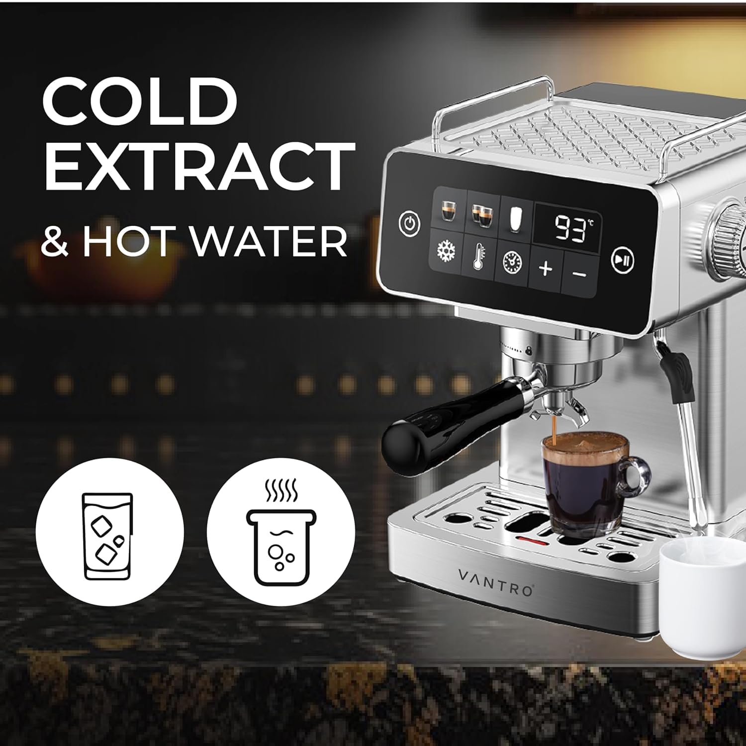 VANTRO Espresso Coffee Machine | Stainless Steel Body with Touch Control Panel | 20 Bar Pump | 1500W Powerful Brewing | Adjustable Temperature & Extraction Settings