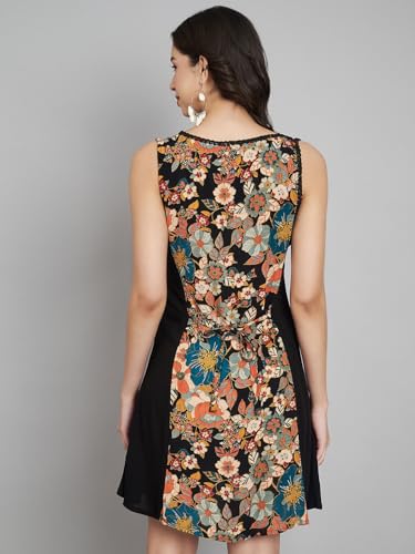veldress21 Women Multicolor Short Mini Beachwear Flare Dress Summer Stylish Straps Embroidery Sides (in, Alpha, XL, Regular, Multi)