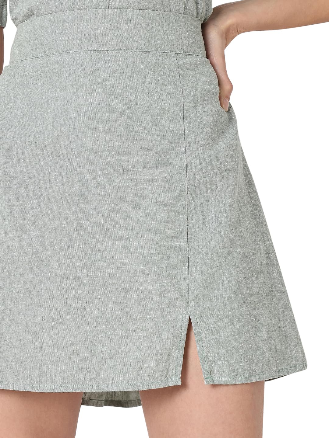 Details: Crafted with precision, this skirt features a front slit detail, complemented by a chic waistband for a touch of sophistication. The side zipper ensures a seamless and flattering fit. Designed to grace your silhouette, the skirt falls elegantly, striking the perfect balance between style and comfort. The refreshing light green hue brings a subtle summer twist, making it a versatile piece for warm days. Embrace the simplicity of this classic piece, pairing it effortlessly with a tucked-in blouse or a stylish top.