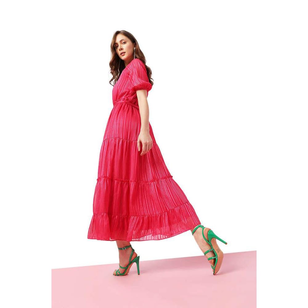 Vero Moda Women 100%Polyester Solid Casual Pink Dress
