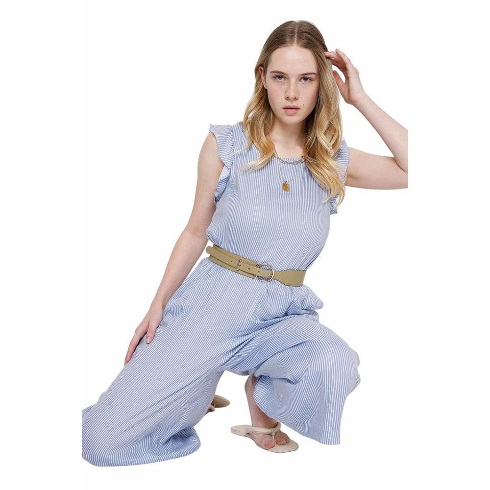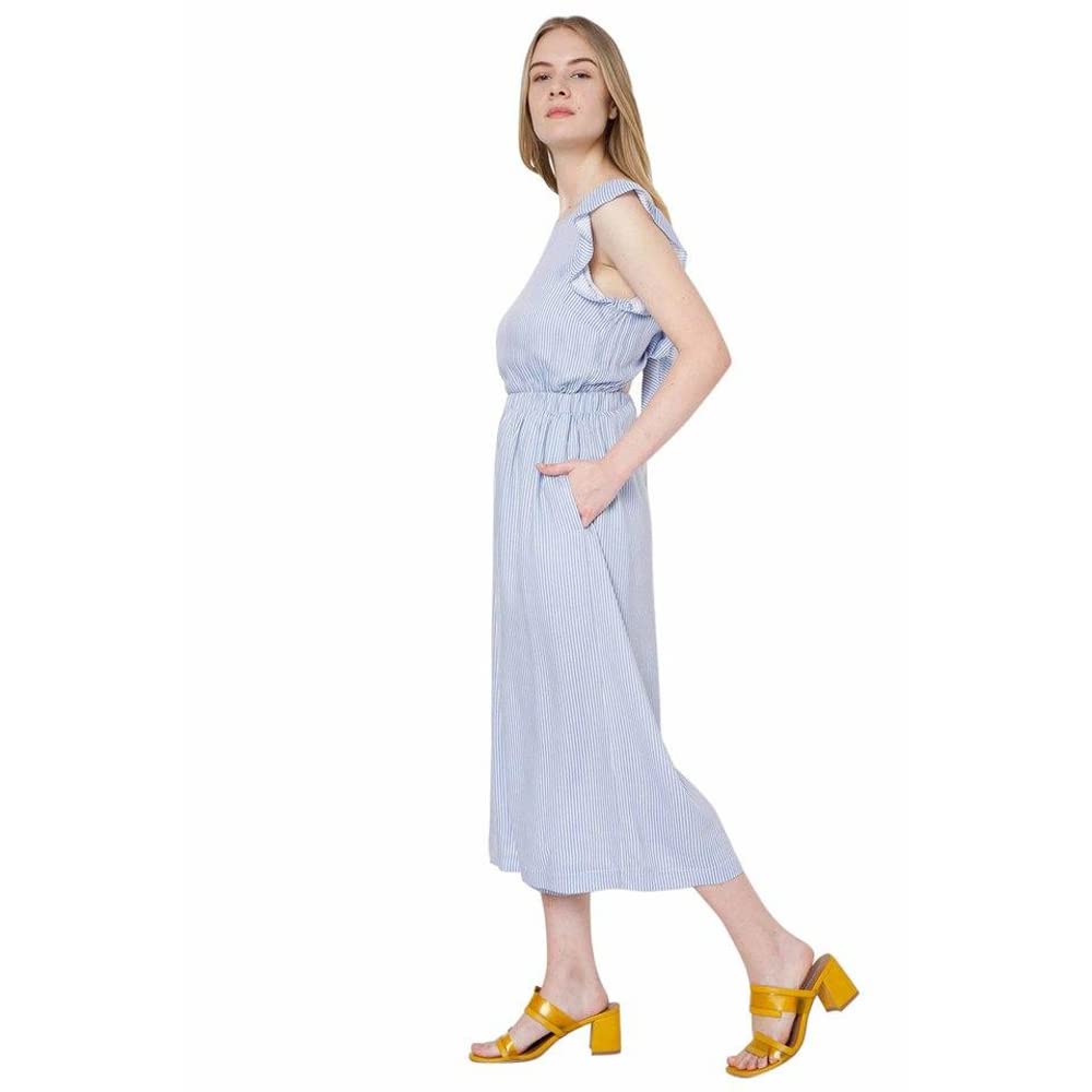 Details: Short Sleeves, Stripe Jumpsuit, Ruffle At Sleeve, Knot At Back, Elasticated Waist, Culotte Length, Wide Leg