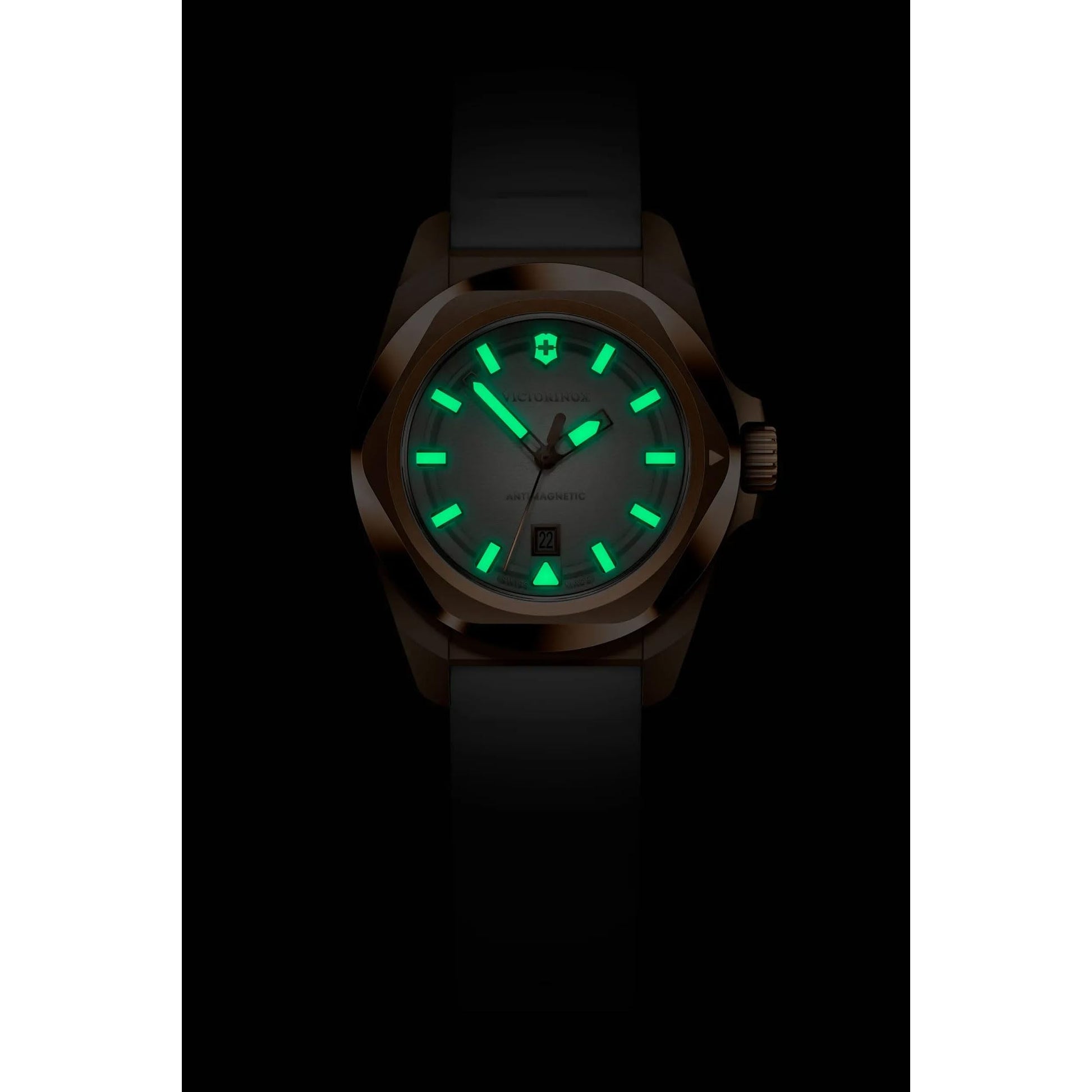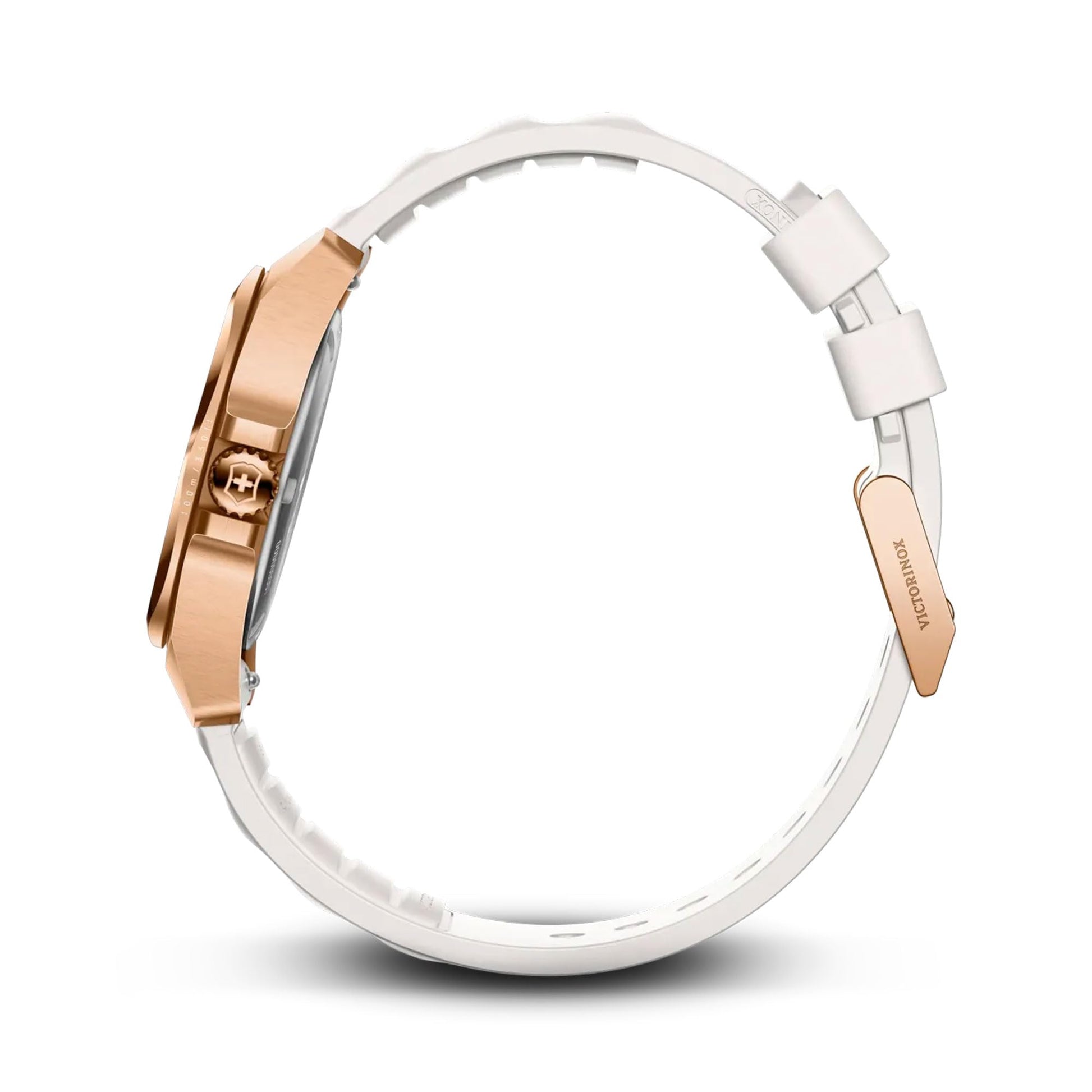 Victorinox I.N.O.X. Small, Swiss Made Analog Women's Watch | White Dial, 32 MM, 100M Water Resistant, PVD Gold Stainless Steel Case, Quartz Movement, White Rubber Strap | 242037