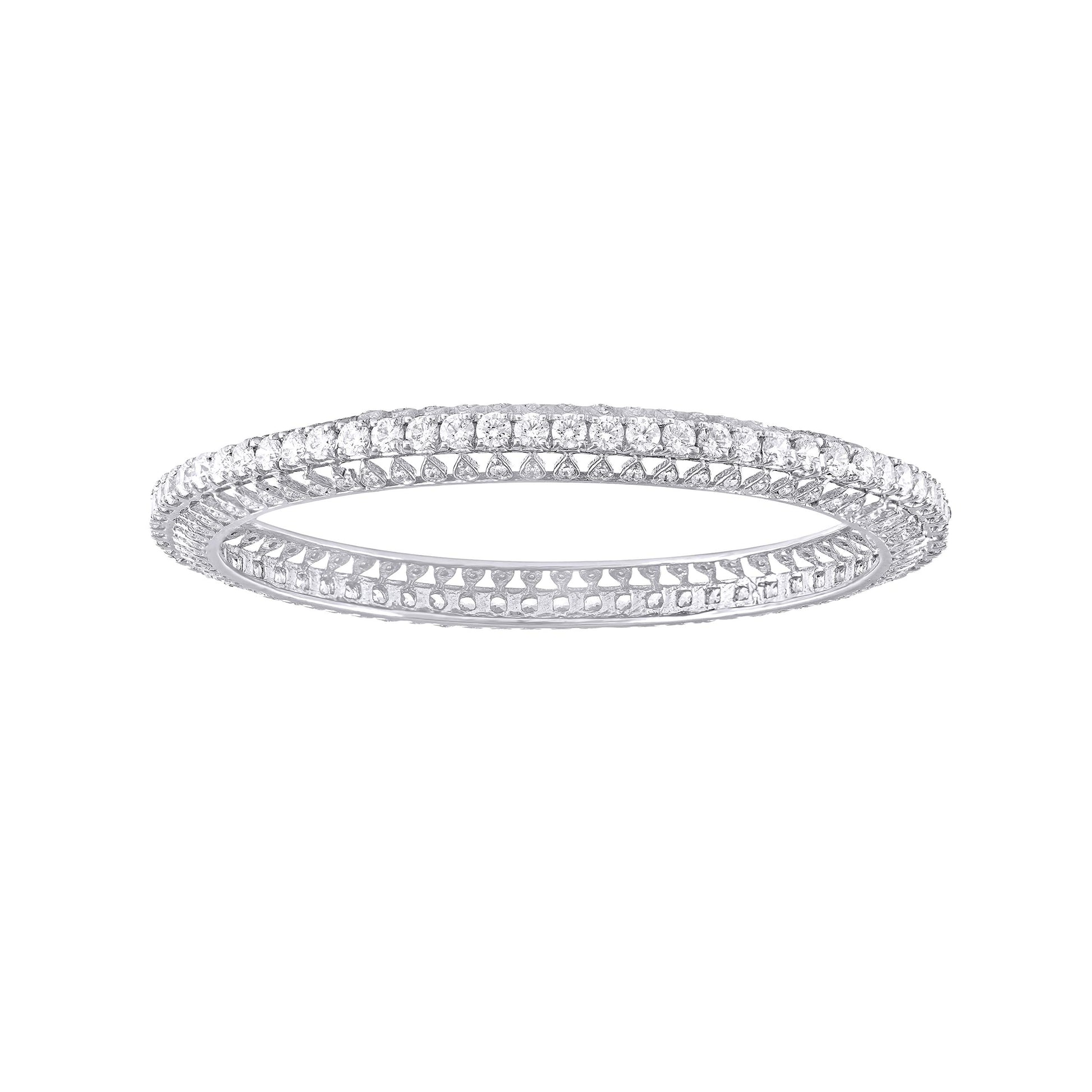 VIJAYA JEWELS 92.5 BIS Hallmarked Sterling Silver Swarovski Zirconia Nickle Free Rhodium plated Bangle For Women In an Elegant Jewellery Box (Size: 2.5” Set of 1)